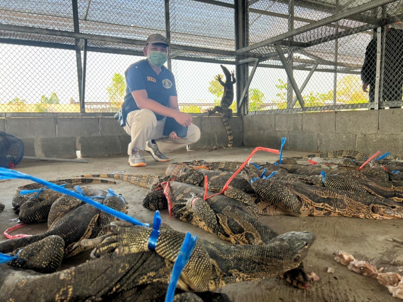 เมื่อวันที่ 7 ก.พ. 2565 พล.ต.ต.มานะ กลีบสัตบุศย์ ผบก.ปทส. สั่งการให้ พ.ต.อ.อรุณ วชิรศรีสุกัญยา รอง ผบก.ปทส. พ.ต.อ.ศานุวงษ์ คงคาอินทร์ ผกก.4 บก.ปทส., พ.ต.ท.เอนก นาคธร รอง ผกก.4 บก.ปทส. สนธิกำลังนายพนัชกร โพธิบัญฑิต ผู้อำนวยการส่วนยุทธการด้านป้องกันและปราบปราม, นายมงคล ไชยภักดี หัวหน้าหน่วยพญาเสือ, นายชัยชาญ ศรียงค์ หัวหน้าส่วนป้องกันและปราบปรามที่ 3 (ภาคเหนือ) และนายสมบัติ รุ่งแตงอ่อน หัวหน้าสายตรวจ เข้าตรวจสอบ “เขมวัชร์ฟาร์ม” เลขที่ 149 หมู่ 9 ต.เนินปอ อ.สามง่าม จ.พิจิตร ซึ่งเป็นฟาร์มเลี้ยงหมูเก่า หลังได้รับร้องเรียนว่ามีการเพาะจำหน่ายสัตว์ป่าคุ้มครองโดยผิดกฎหมาย