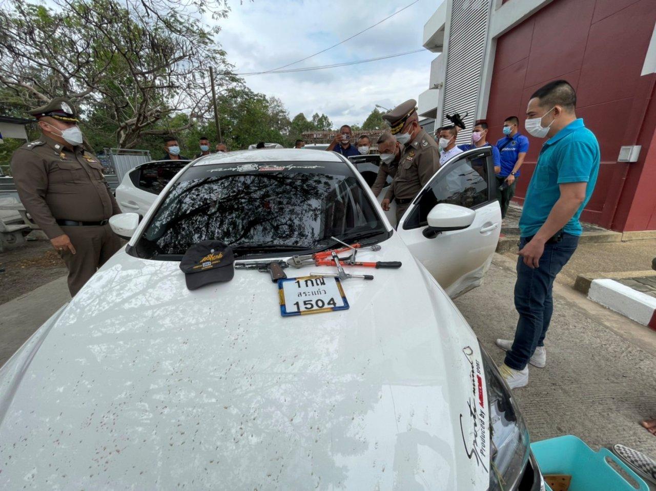 ต่อมาช่วงสายวันนี้ (16 ก.พ. 65) ทางเจ้าหน้าที่ตำรวจ สภ.นาดี จ.ปราจีนบุรี ได้ตั้งจุดตรวจในพื้นที่สามแยกเขาขาด ต.แก่งดินสอ อ.นาดี พบรถยนต์ต้องสงสัย คือ รถเก๋งมาสด้า สีขาว ทะเบียน กต 8091 สระแก้ว ภายในรถมีคนนั่งมา จำนวน 4 คน ทางเจ้าหน้าที่จึงได้เรียกเพื่อทำการตรวจค้น แต่รถคันดังกล่าวไม่ยอมจอดและแหกด่านหนี ทางเจ้าหน้าที่ตำรวจจึงขับรถไล่ติดตาม พร้อมวิทยุแจ้งให้ สภ.กบินทร์บุรี ตั้งจุดสกัดจับส่วนรถคนร้ายขณะขับหนีเจ้าหน้าที่ตำรวจ ได้ขับรถไปเฉี่ยวนกับรถ จยย.ชาวบ้านบาดเจ็บสาหัส