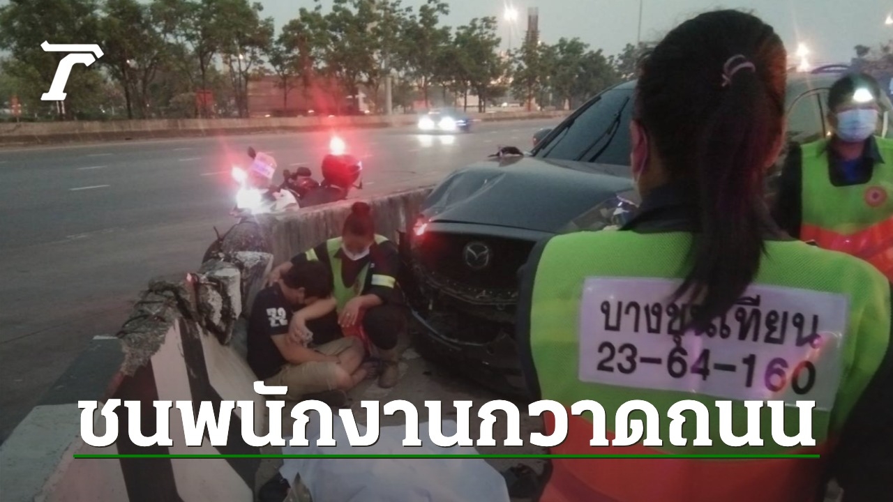 วิศวกรเครื่องกลขับรถมาสด้า CX-5 จะไปตรวจงาน พุ่งชนเสากั้นทางหน้าด่านเก็บเงินทางด่วนกาญจนาภิเษก-พระราม 2 พนักงานหญิงสำนักงานเขตบางขุนเทียนกำลังทำงานกวาดถนน ถูกชนเสียชีวิตคาที่