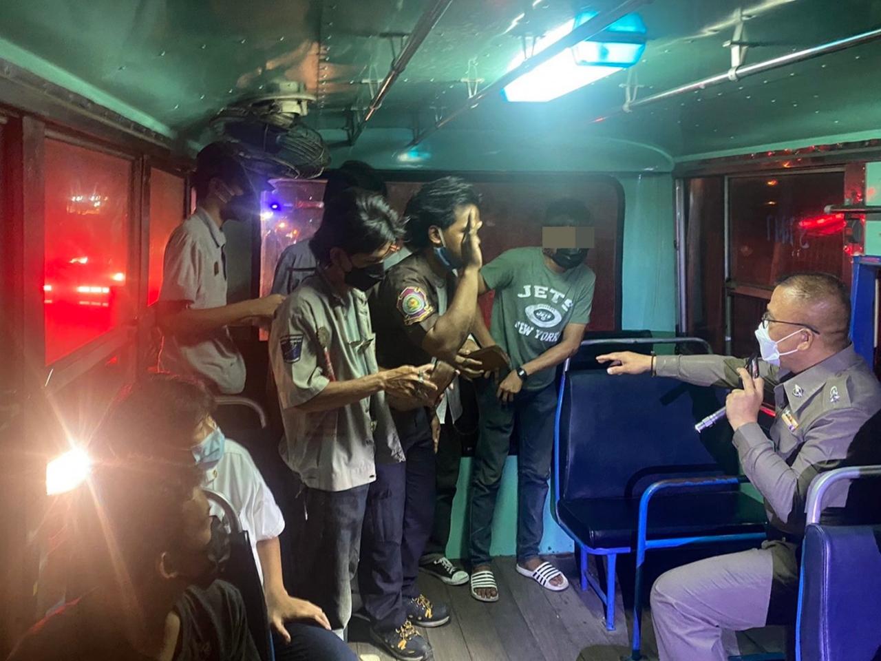 ตำรวจ สน.หัวหมาก บุกตรวจค้นจับกุมบนรถเมลล์สาย 92 กลุ่มวัยรุ่น 10 คน เป็นเด็กช่างอุตสาหกรรม ยึดของกลางอาวุธมีดได้เพียบ ทั้งมีดหัวตัด มีดขวาน มีดดายหญ้า มีดพร้า มีดไทยประดิษฐ์ มีดสั้นเดินป่า
