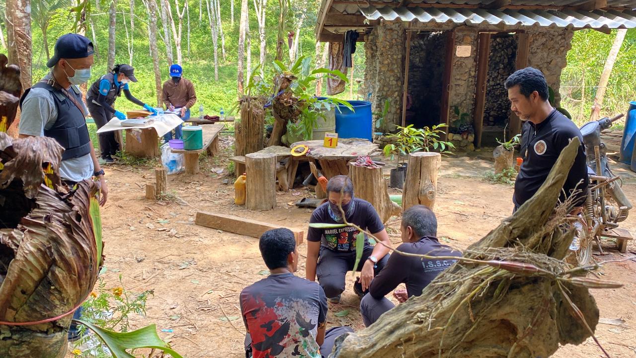 และเมื่อช่วงเช้ามืดของวันนี้ ตร.ได้นำกำลังเจ้าหน้าที่กว่า 100 นาย เข้าปิดล้อมตรวจค้นที่ขนำกลางป่าสวนยาง ที่อยู่บนเขาพื้นที่บ้านคลองรำขัน หมู่ 10 ต.เขาคราม อ.รัตภูมิ จ.สงขลา หลังได้รับรายงานว่าผู้ต้องหาทั้งสามคนเข้าไปขอความช่วยเหลือจากคนสนิทที่อยู่ในเครือข่ายค้ายาเสพติดกลุ่มเดียวกัน และควบคุมตัว นายคำจร กุณโรจร อายุ 35 ปี หรือ บ่าวหรือข่าว ซึ่งเป็นคนสนิทและอยู่กลุ่มเดียวกันกับ ฉุย รักจันทร์ นายอัฐพล หรือรวย ซึ่งอยู่ในขนำ