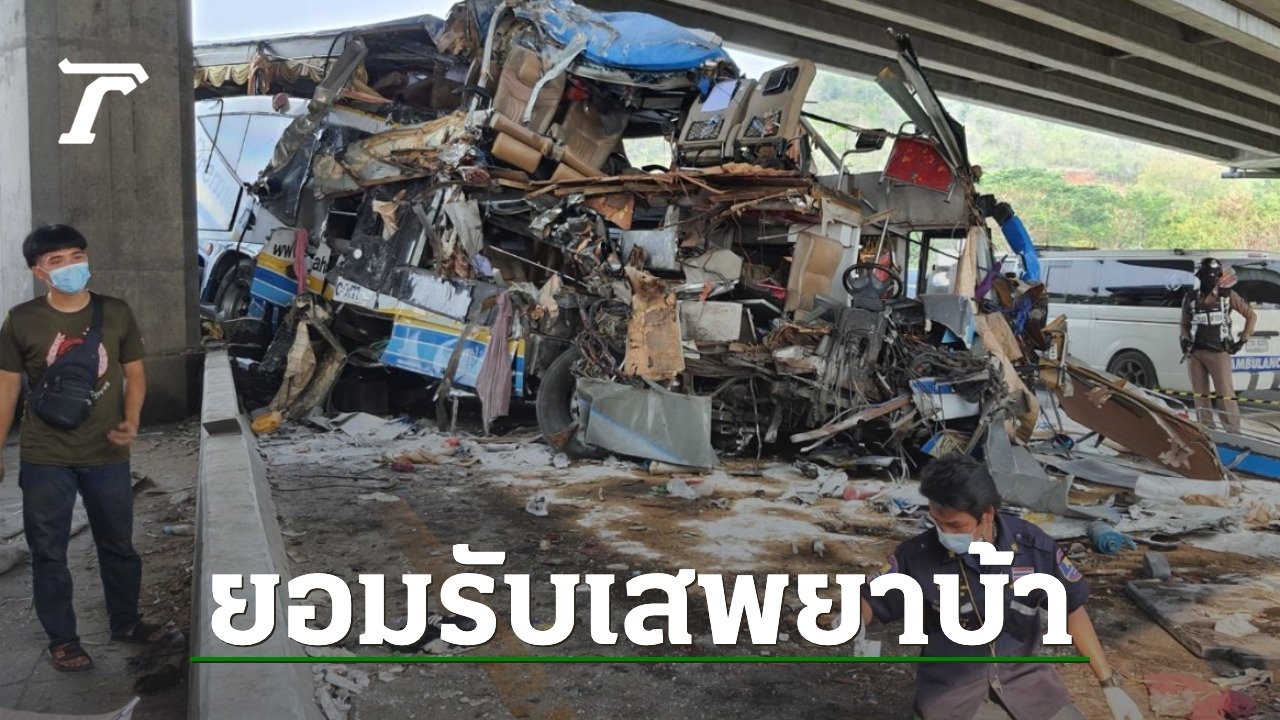 ฟื้นแล้ว โชเฟอร์รถทัวร์มรณะพุ่งชนตอม่อเสาสะพานต่างระดับถนนมิตรภาพ ที่สระบุรี ตาย 8 ศพ สารภาพเป็นมือ 2 รับช่วงขับจากโคราช โดย "เสพยาบ้า" แต่ถึงที่เกิดเหตุเกิดวูบหลับ ขณะใช้ความเร็วที่ 89 กิโลเมตรต่อชั่วโมง