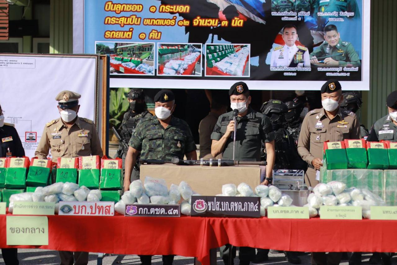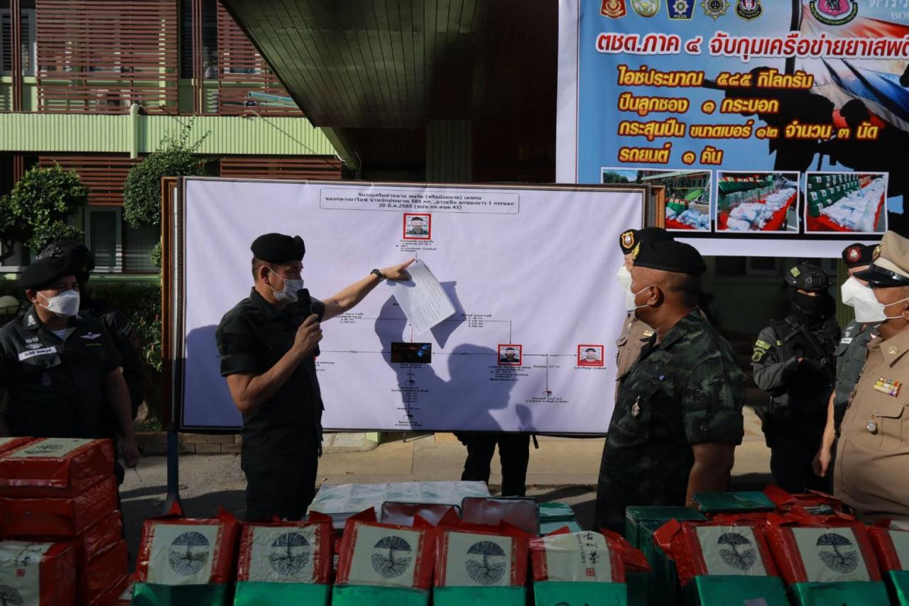 มทภ.4-ผบ.ตชด. ตั้งโต๊ะแถลง รวบผัวเมียขบวนการค้ายาเสพติดข้ามชาติ เครือข่าย "ซอลหลี" ซุกยาไอซ์ 585 กก. มูลค่า 117 ล้าน ในเตาทอดไฟฟ้า นำส่งต่างประเทศ