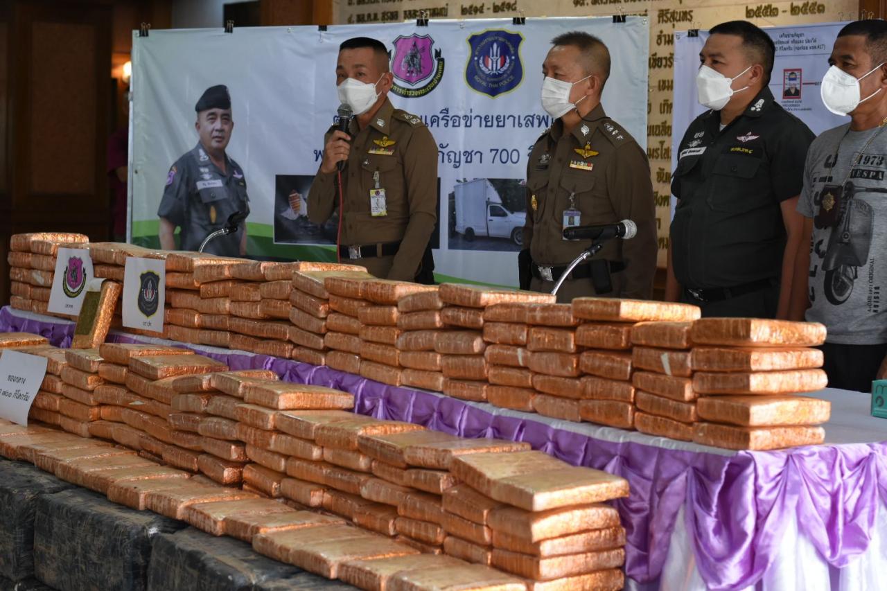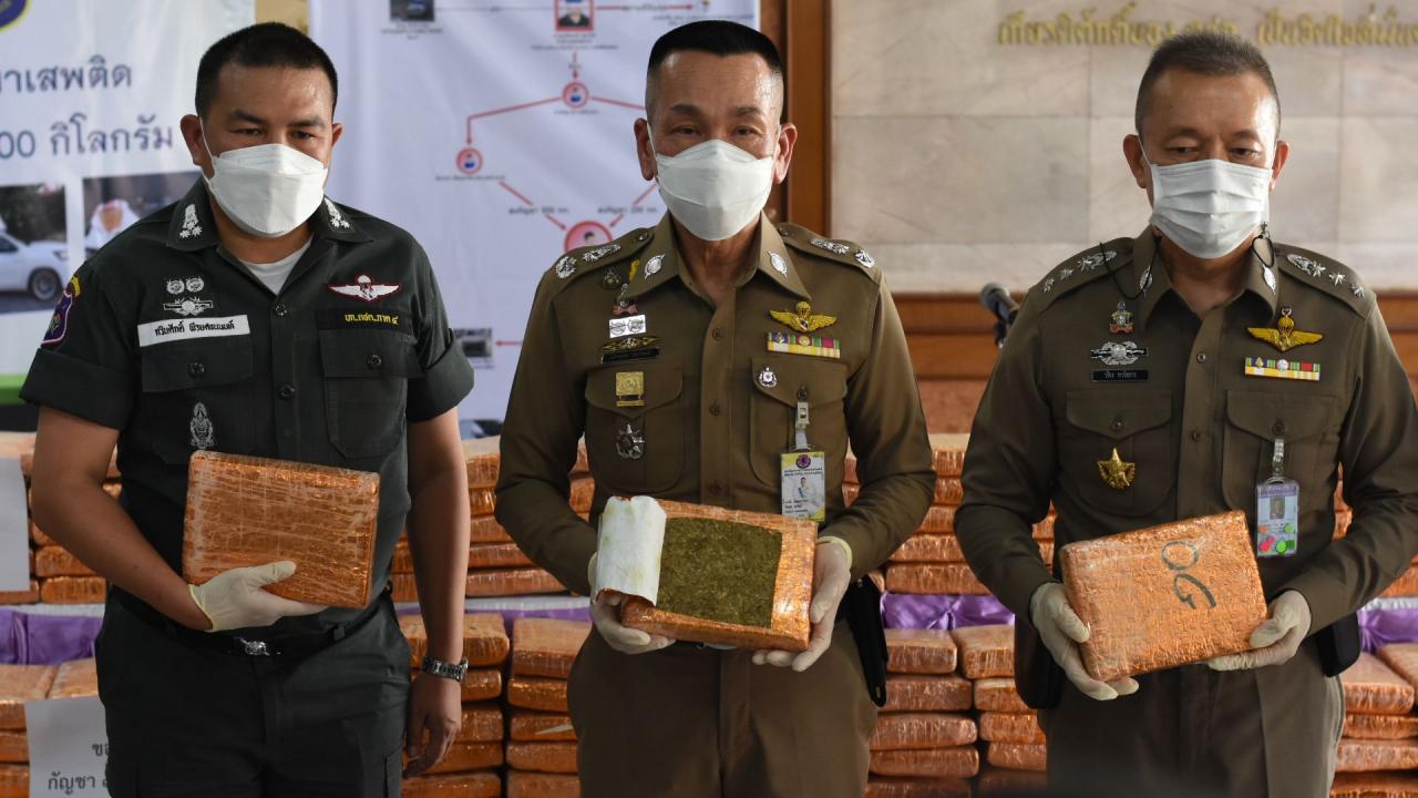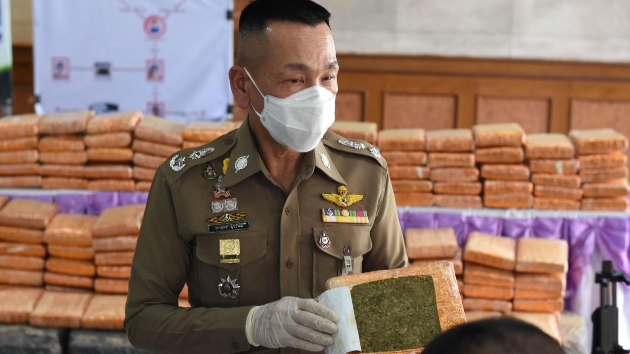 พล.ต.ต.วรายุทธ เปิดเผยว่า สืบเนื่องจากเมื่อวันที่ 16 ต.ค.64 บก.ตชด.ภาค4 ทำการจับกุมผู้ต้องหา 6 ราย พร้อมของกลางกัญชาอัดแห้ง 25 กระสอบ น้ำหนักรวม 999 กิโลกรัม ในพื้นที่ จ.สงขลา โดยผู้ต้องหาให้การรับสารภาพว่าติดต่อซื้อกัญชามาจากผู้ค้ากัญชาชาวลาว และมีนายหน้าลำเลียงกัญชา มาจากทางภาคอีสาน เขตติดต่อ จ.นครพนม และ จ.มุกดาหาร เจ้าหน้าที่ชุดจับกุมจึงได้ทำการสืบสวนจนทราบว่า เครือข่ายยาเสพติดดังกล่าวมีนายธนัชพงศ์ เป็นผู้ติดต่อกับผู้ค้ากัญชาชาวลาว และเป็นผู้นำกัญชามาส่งต่อให้กับลูกค้าในพื้นที่ ภาคกลาง และภาคใต้ เพื่อส่งต่อไปยังประเทศเพื่อนบ้าน