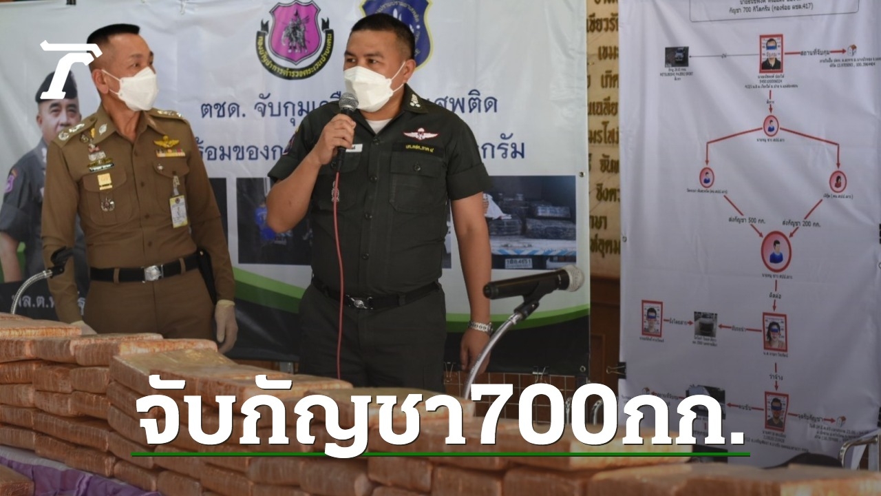 ตชด. บุกจับแก๊งค้ากัญชาข้ามชาติรายใหญ่ หลังขับกระบะวิ่งมาส่งลูกค้าในพื้นที่ อ.บางบัวทอง ตรวจค้นพบของกลางกัญชาอัดแท่ง 18 กระสอบ 700 กิโล มูลค่ากว่า 10 ล้าน พร้อมผู้ต้องหา 4 ราย
