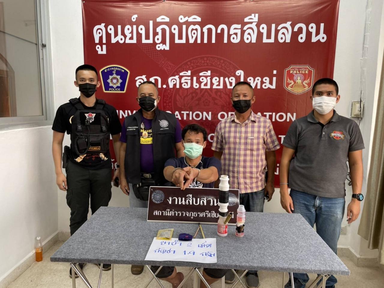 เมื่อวันที่ 30 มี.ค.65 ขณะที่ตำรวจ สภ.ศรีเชียงใหม่ จ.หนองคาย โดย พ.ต.อ.สันติ บุญชู ผกก.สภ.ศรีเชียงใหม่, พ.ต.ท.เหรียญชัย ศรีเชียงสา สว.สส. ได้นำเจ้าหน้าที่ชุดสืบสวน บุกจับหนุ่มไลฟ์สดเสพยาบ้า ทราบชื่อภายหลัง นายศักดิ์ณรงค์ อินธิแสง อายุ 41 ปี อยู่บ้านเลขที่ 109 หมู่ 1 ต.ตองโขบ อ.โคกศรีสุพรรณ จ.สกลนคร จับกุมได้ขณะมีอาการมึนเมา ตรวจค้นเจอยาบ้า 2 เม็ด และกัญชาแห้ง 1.9 กรัม พร้อมอุปกรณ์การเสพ