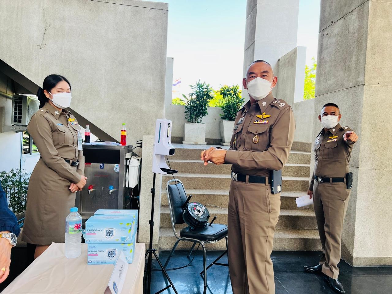 ส่วนบริเวณด้านหน้าอาคารทางขึ้น เจ้าหน้าที่ตำรวจได้จัดเตรียมให้สื่อมวลชนที่จะเข้าร่วมแถลงข่าว ลงทะเบียนและตรวจวัดอุณหภูมิก่อนเข้าร่วม ตามมาตรการการป้องกันโควิด-19