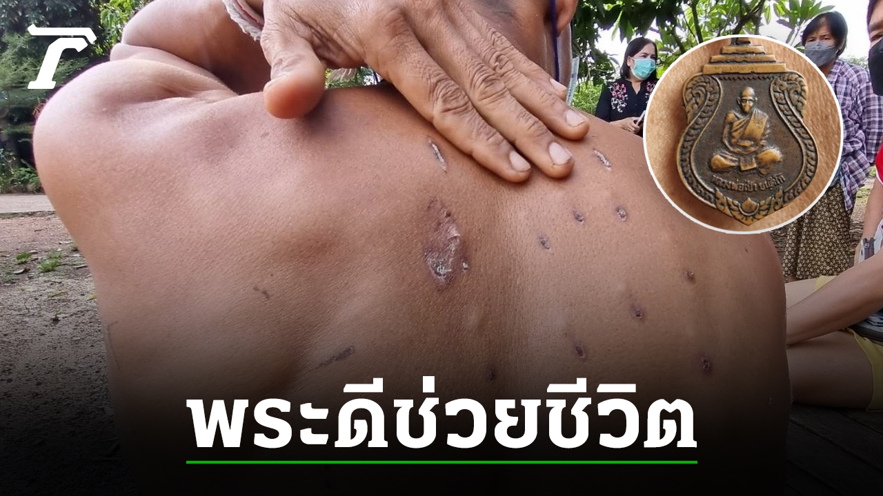 หนุ่มใหญ่โดนวัยรุ่นสาดกระสุนปืนลูก 100 เข้าหัวและกลางหลังกว่า 50 เม็ด แต่รอดปาฏิหาริย์ เชื่อเป็นเพราะพุทธคุณ "เหรียญหลวงพ่อเป้า ขันติโก" เพราะหลังส่ง รพ. 2 วันกลับมาเดินปกติ เชื่อบารมีหลวงพ่อช่วยรอดตาย
