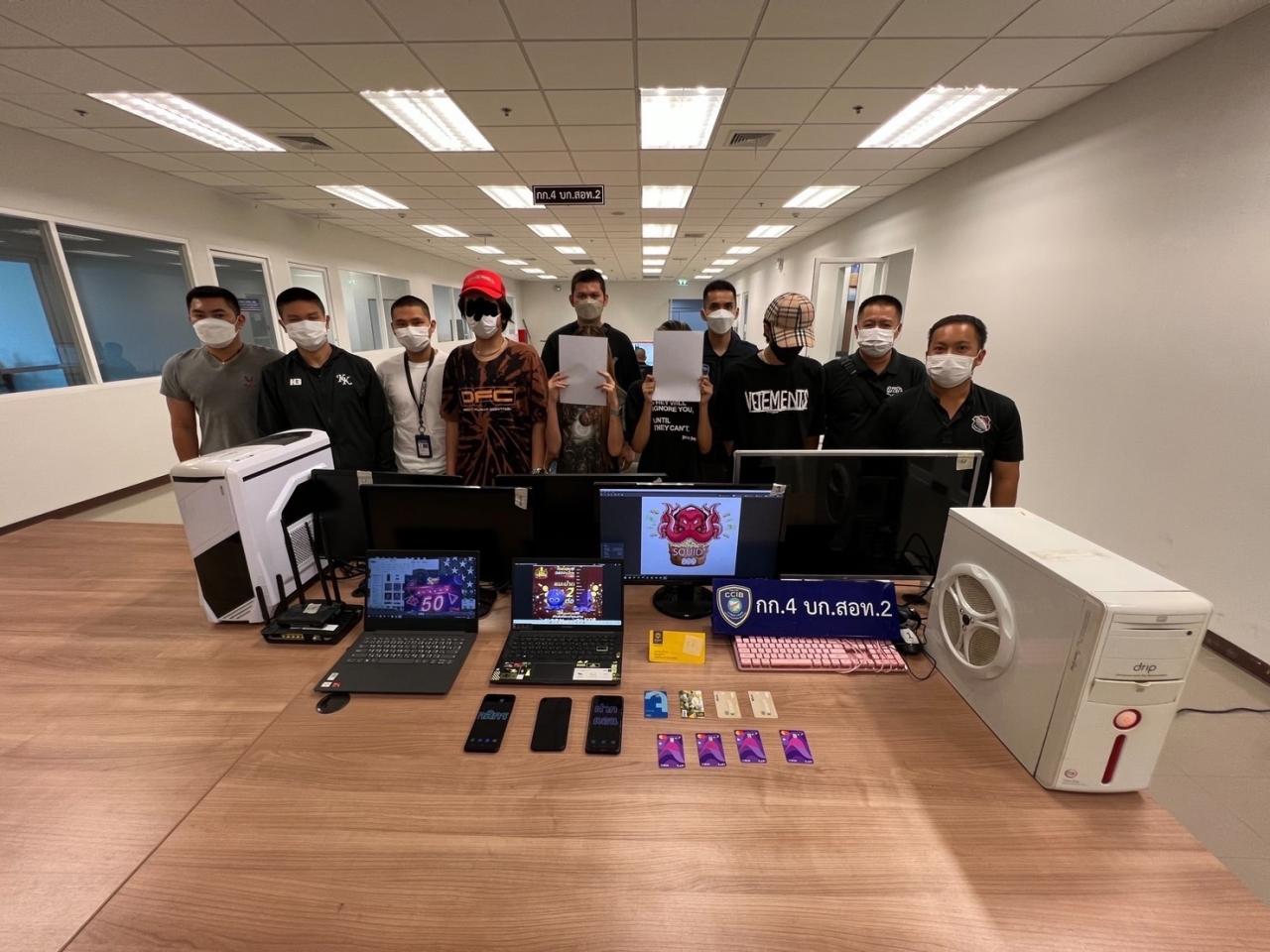 และ สามารถตรวจยึดของกลาง อาทิ รถยนต์กระบะ 1 คัน, รถจักรยานยนต์ 2 คัน, คอมพิวเตอร์ 22 เครื่อง,โทรศัพท์มือถือ 33 เครื่อง และ พบยอดเงินหมุนเวียนรวมกว่า 240 ล้านบาท