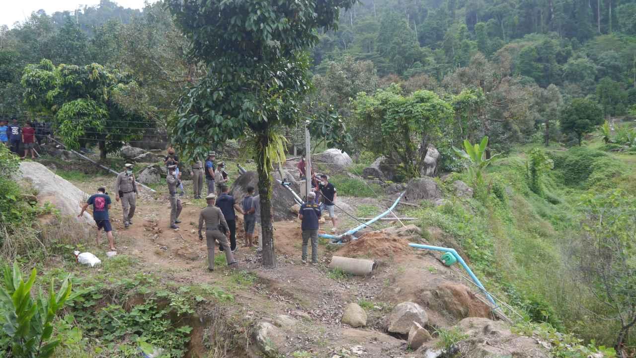 ทางเจ้าหน้าที่ตำรวจได้พา นายบุญมี ผู้ต้องหา ไปชี้จุดแนวหลักเขตแดนที่เกิดข้อพิพาท กับผู้เสียชีวิต โดยได้พาไปชี้จุดบริเวณที่ นายเฉลิม น้องชาย ได้มีการว่าจ้างรถแบ็กโฮมาขุดปรับพื้นที่ บริเวณที่ดินที่พิพาทระหว่างของผู้ต้องหากับผู้เสียชีวิต โดย นายบุญมี ผู้ต้องหา กล่าวยืนยันว่า ในวันเกิดเหตุได้เดินมาสอบถาม นายเฉลิม ผู้เสียชีวิตว่า มีการนำรถแบ็กโฮมาขุดในที่ดินของตัวเอง ซึ่งทำให้เกิดการโต้เถียงกันและทำให้ นายเฉลิม ผู้เสียชีวิต ได้ใช้อาวุธปืนยิงข่มขู่ลงในหลุมที่ใช้รถแบ็กโฮขุด จึงเกิดความโมโห ในอีกวันถัดมาในขณะที่ นายเฉลิม ผู้เสียชีวิต เดินมาเปิดแผงควบคุมมอเตอร์ เพื่อปล่อยน้ำในสวน