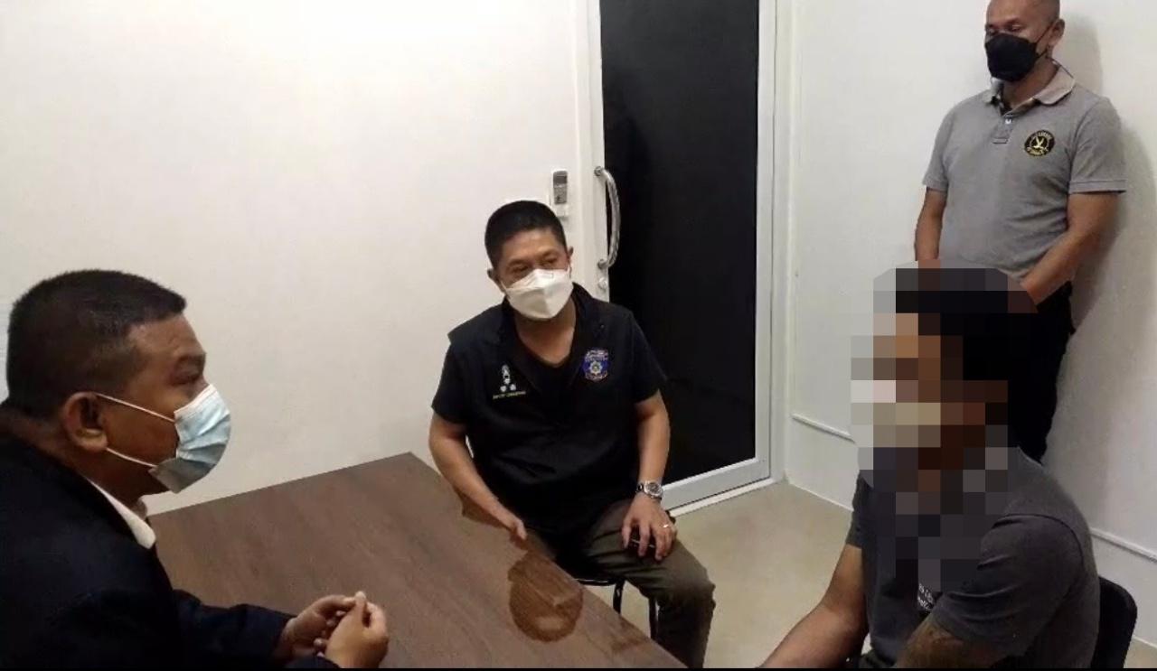 จับกุมตัวผู้ต้องหาที่ สภ.หนองปรือ อำเภอบางละมุง จังหวัดชลบุรี