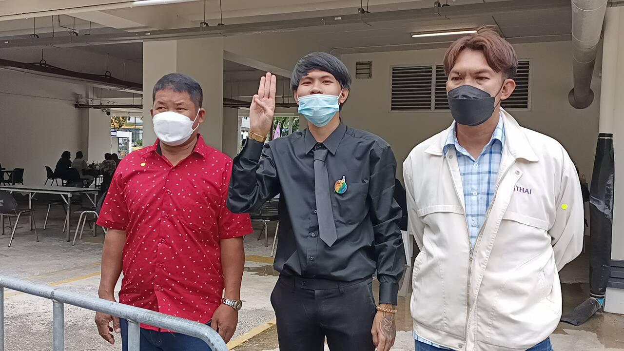 โดยคดี อัยการฟ้องว่า วันที่ 10 เม.ย. เวลากลางคืน จำเลยทั้ง 3 ได้บังอาจกระทำฝ่าฝืนกฎหมาย กล่าวคือ ขี่รถจักรยานยนต์ 3 คันเรียงตามกันมาบนนถนนวิภาวดีรังสิต แล้วจอดรถใกล้ประตูข้างกองรักษาการณ์ กองพันทหารราบที่ 1 กรมทหารที่ 1 กรม ทม.1 แขวงสามเสน เขตพญาไท กทม. แล้วร่วมกันขว้างระเบิดปิงปอง ซึ่งเป็นวัตถุก่อให้เกิดระเบิดจนน่าจะเป็นอันตรายแก่บุคคลอื่น จนเกิดเสียงดังสองลูก จากนั้นจึงพากันหลบหนี ต่อมาได้จับกุมจำเลยได้ตามหมายจับศาลอาญา และได้ขังนายพรพจน์ น.ส.ปฏิมา ในระหว่างสอบสวน จำเลยใก้การปฏิเสธ ศาลรับฟ้องเป็นคดีดำที่ 1266/65 นายบุ๊ค ยื่นประกันตัวโดยใช้หลักทรัพย์ 1 แสนบาท ศาลอยู่ระหว่างพิจารณา