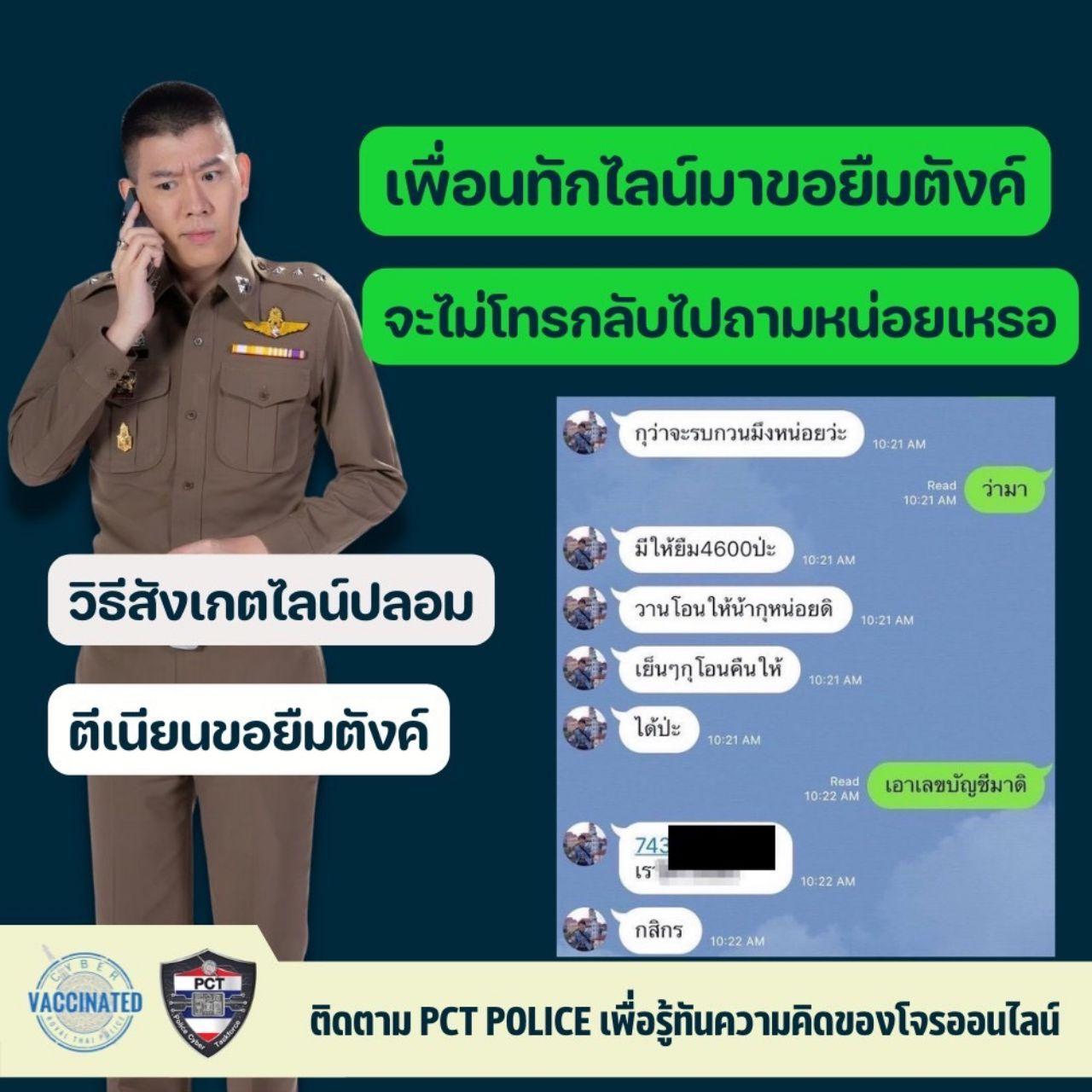 เมื่อวันที่ 29 พ.ค. 65 ที่สำนักงานตำรวจแห่งชาติ พล.ต.อ.ดำรงศักดิ์ กิตติประภัสร์ รอง ผบ.ตร. ผู้อำนวยการศูนย์ปราบปรามอาชญากรรมทางเทคโนโลยีสารสนเทศ สำนักงานตำรวจแห่งชาติ (ศปอส.ตร.) หรือ PCT เปิดเผยเรื่องนี้ว่า ได้รับรายงานจากฝ่ายรับแจ้งความออนไลน์ ว่ามีผู้เสียหาย ถูกคนร้ายแฮกเฟซบุ๊ก แล้วใช้บัญชี Line หลอกยืมเงินเพื่อน สร้างความเสียหายจำนวนมาก ซึ่งยังเกิดขึ้นอยู่อย่างต่อเนื่องในปัจจุบัน