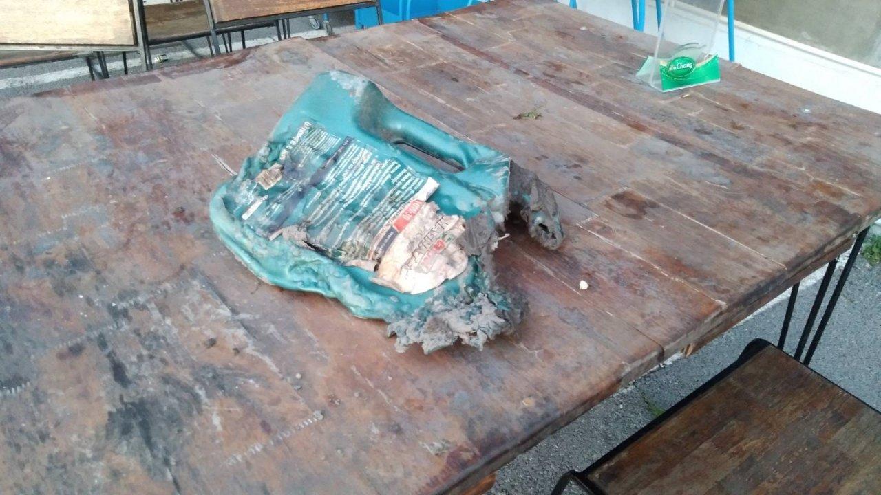 อย่างไรก็ตามเมื่อตรวจสอบบริเวณหน้าร้านพบแกลลอนน้ำมันเครื่องขนาด 5 ลิตร สีเขียว มีกลิ่นน้ำมันเชื้อเพลิง ตกอยู่ในสภาพถูกเพลิงลุกไหม้ จนแกลลอนพลาสติกละลาย จำนวน 1 ใบ นอกจากนี้ยังพบไฟแช็กสีเขียว ตกอยู่ใกล้กันอีก 1 อัน เจ้าหน้าที่จึงเก็บรวบรวมรายละเอียดที่พบไว้เป็นหลักฐาน ก่อนประสานกองพิสูจน์หลักฐานเข้าทำการตรวจสอบ เนื่องจากคาดว่าน่าจะมีผู้วางเพลิง เผาร้านอาหารดังกล่าว