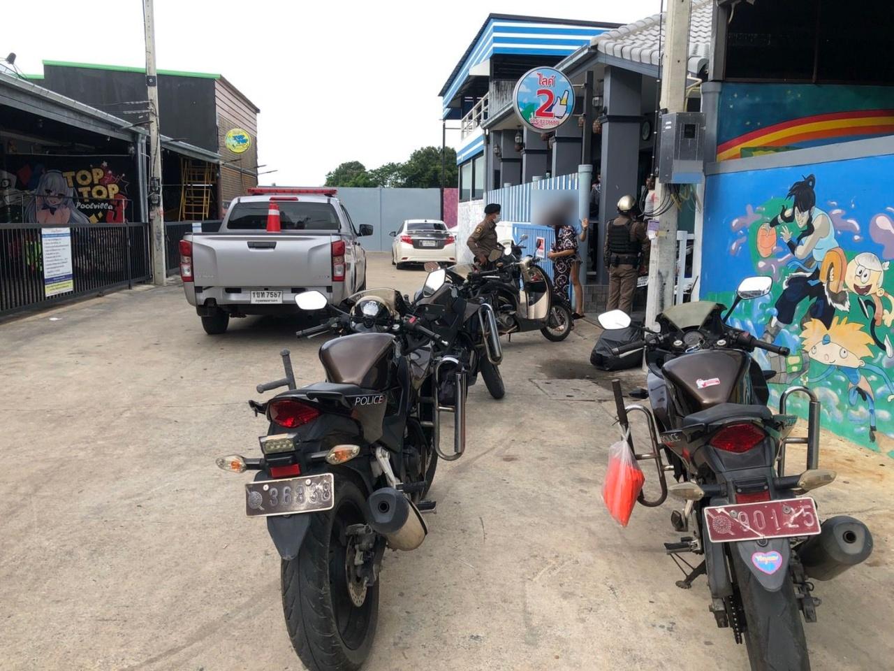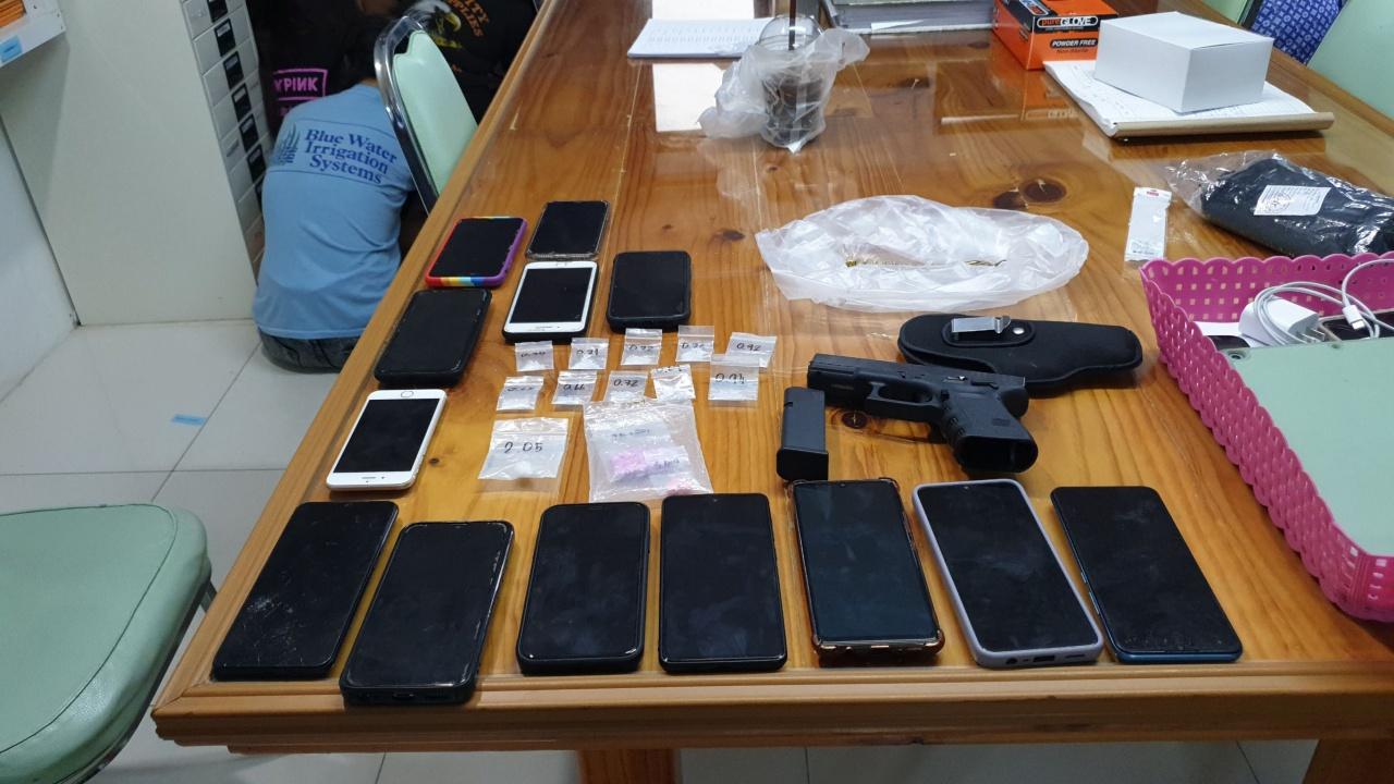 พบรถยนต์เก๋งคันที่ได้รับแจ้งจอดอยู่บริเวณหน้าบ้านพูลวิลล่า Like 2 เมื่อดูเข้าไปภายในบ้านพัก พบกลุ่มวัยรุ่นทั้งชายและหญิง จำนวน 18 คน เป็นเยาวชน 3 คน พักอาศัยอยู่ในบ้าน จึงได้เรียกออกมาซักถาม และสังเกตเห็นมีอาการพิรุธต้องสงสัย คล้ายคนเสพยาเสพติด และดูเหมือนยังไม่ได้พักผ่อนหลับนอน เจ้าหน้าที่ตำรวจจึงเข้าตรวจค้นภายในบ้านพัก ผลการตรวจค้นพบยาอี และเคตามีนบรรจุถุงพลาสติกวางซุกซ่อนอยู่บริเวณช่องลมด้านหลังของห้องน้ำ ตรวจคนภายในรถยนต์เก๋ง พบอาวุธปืนพกสั้นชนิดกึ่งอัตโนมัติ ขนาด 9 มม. ยี่ห้อ Glock รุ่น 19 ไม่มีหมายเลขทะเบียน 1 กระบอก เครื่องกระสุนปืน 15 นัด
