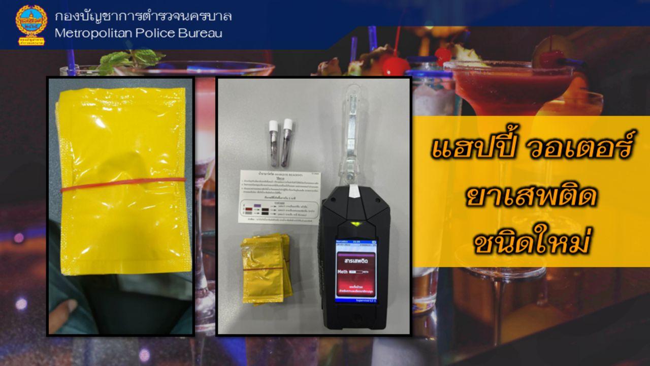 ด้าน พล.ต.ต.นิธิธร กล่าวว่า เมทแอมเฟตามีน เรียกว่า “happy water” ของกลางที่ตรวจยึดได้ 26 ซองๆ ละ 2.2 กรัม ยาเสพติดชนิดนี้กำลังระบาดในกลุ่มนักเที่ยวนัดปาร์ตี้เสพยากัน โดยมีความเข้มข้นมากนำไปละลายในน้ำอุ่นก่อนผสมในเครื่องดื่ม มีส่วนผสมของยาเสพติดหลายขนานทั้ง ยาแก้ปวดทรามาดอล ยาไอซ์ เฮโรอีน และยาบ้า ขายซองละ 3,000 บาท บช.น.สั่งการให้ทุกสน.กวดขันตรวจสอบสถานบันเทิง รีสอร์ต และเกสต์เฮาส์ นำยาเสพติดประเภทนี้บรรจุไว้ในวาระเร่งด่วนประจำเดือน เพื่อป้องกันและกวาดล้างไม่ให้แพร่ระบาด เมื่อเสพแล้วทำให้มีอาการประสาทหลอน