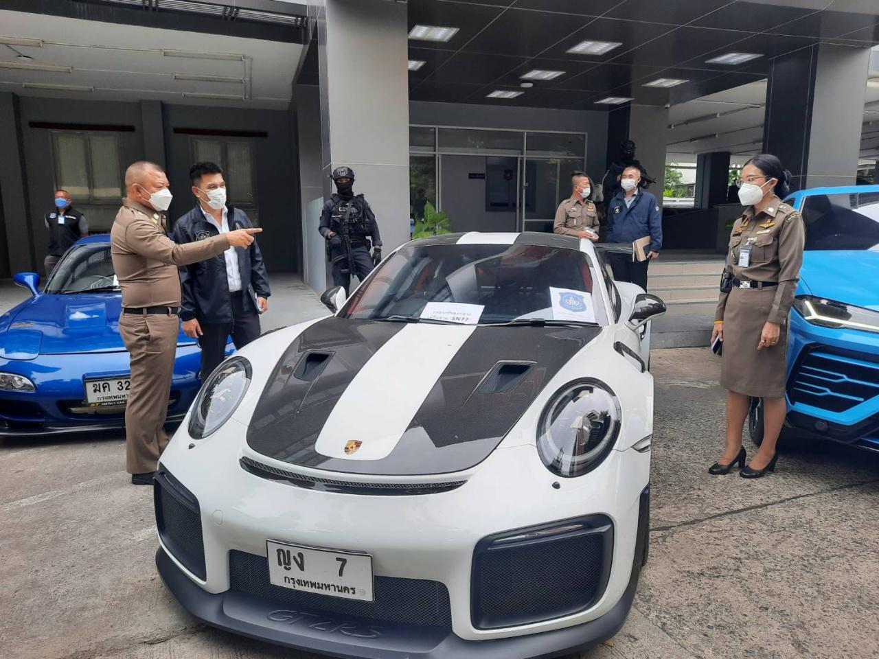 พล.ต.อ.รอย อิงคไพโรจน์ รองผบ.ตร. เปิดเผยว่า คดีแรกเมื่อวันที่ 8 ก.ค.ที่ผ่านมา ตำรวจ บก.ขส.บช.ปส. ร่วมกับหน่วยงานที่เกี่ยวข้องจับกุม น.ส.ศรัญญา ฟักน่วม อายุ 35 ปี และนายโชคพิพัฒน์ ฉันทร์วิเชียร อายุ 35 ปี สามี พร้อมยึดทรัพย์สินไว้ตรวจสอบเบื้องต้น 1.รถยนต์ยี่ห้อโตโยต้า รุ่น Alphard SC สีขาว ทะเบียน (ป้ายแดง) ณ-0273 กทม. 2.มาสด้า รุ่น RX 7 สีน้ำเงิน ทะเบียน ฆค 3216 กทม. 3.Lamborghini รุ่น URUS สีฟ้า ทะเบียน (ป้ายแดง) ณ-5124 4.ฮอนด้า รุ่นแจ๊ส ทะเบียน 3กถ-7353 กทม. 5.PORCHE รุ่น 911 จีที2 อาร์เอส สีขาว ทะเบียน ญง 7 กทม. 6.มิตซูบิชิ รุ่นแสนเซอร์ สีเทา ทะเบียน กอ-6934 นนทบุรี 7.นิสสัน รุ่นสกายไลน์ อาร์ 32 ทะเบียน ฐค 32 กทม. 8.นาฬิกาข้อมือระบุตัวอักษรภาษาอังกฤษ paneria 9.นาฬิกาข้อมือระบุชื่อภาษาอังกฤษ "patek philippe geneve" 10.นาฬิกาข้อมือระบุชื่อภาษาอังกฤษ richard mille จำนวน 1 เรือน 11.บ้านเลขที่ 99/121 หมู่บ้านลัดดารมย์ ราชพฤกษ์-รัตนาธิเบศร์ ต.อ้อมเกร็ด อ.ปากเกร็ด จ.นนทบุรี พร้อมที่ดิน จำนวน 1 หลัง และ 12.อาวุธปืน ขนาด 9 มม. ยี่ห้อ อินฟินิตี้ แม็กกาซีน 3 อัน พร้อมกล่องใส่อาวุธปืน 1 กระบอก