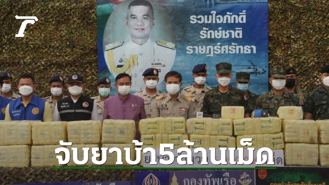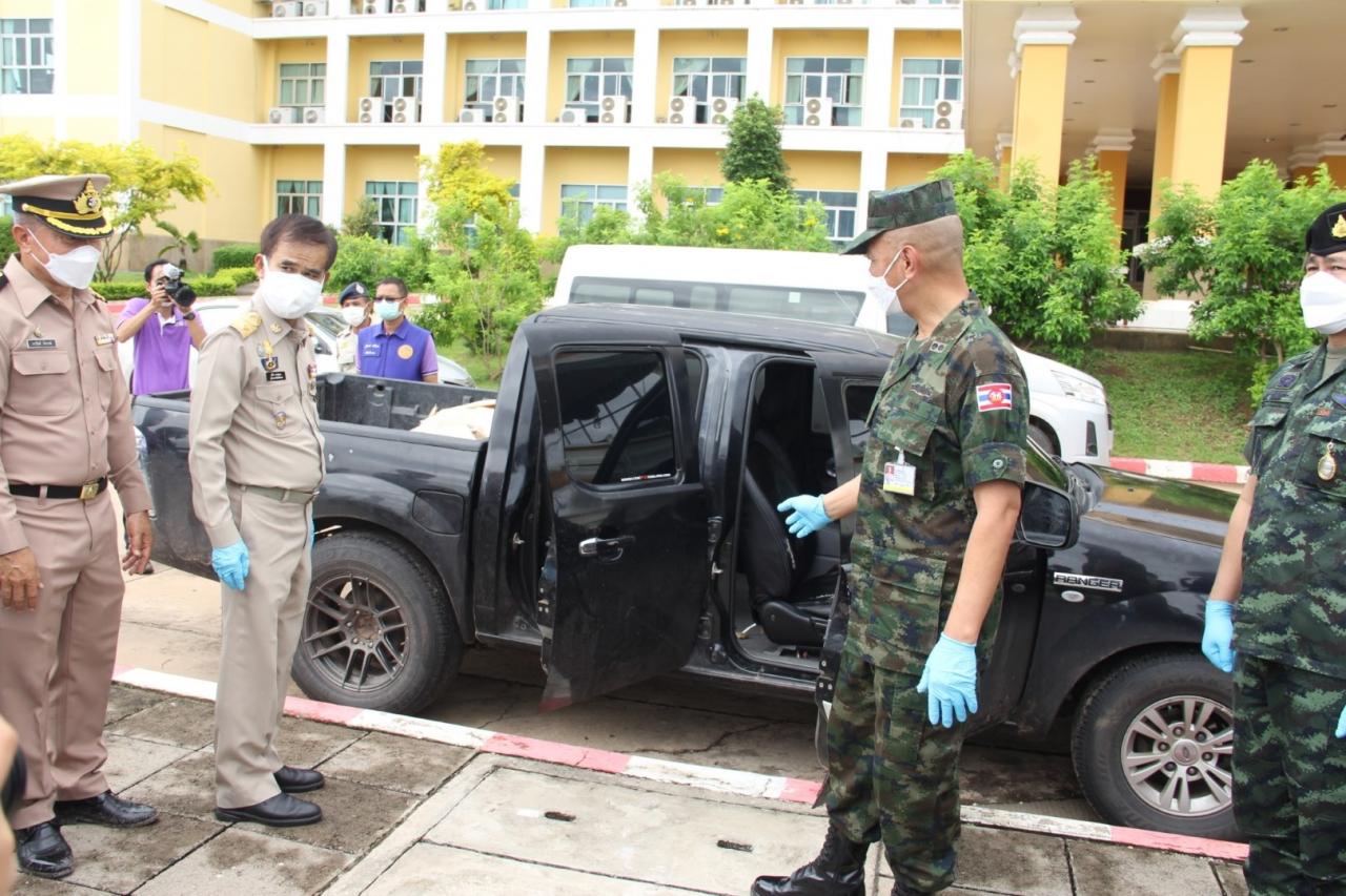 เมื่อเวลา 10.30 น. วันที่ 12 ก.ค. 65 ที่หน้าศาลากลางจังหวัดบึงกาฬ นายสนิท ขาวสอาด ผวจ.บึงกาฬ พล.ร.ต.สมบัติ จูถนอม ผบ.นรข. พล.ต.ณรงค์ สวนแก้ว ผบ.กกล.สุรศักดิ์มนตรี พล.ต.ต.ธรรมจักร คงมงคล ผบก.ภ.จว.บึงกาฬ และหน่วยงานความมั่นคงร่วมกันแถลงข่าวการตรวจยึดยาบ้า 5,090,000 เม็ด มูลค่ากว่า 254,500,000 บาท หลังหน่วยเรือ นรข.บึงกาฬ ไล่ล่าขบวนการค้ายาเสพติดจวนตัวจอดรถข้างทางหลบหนีไปได้