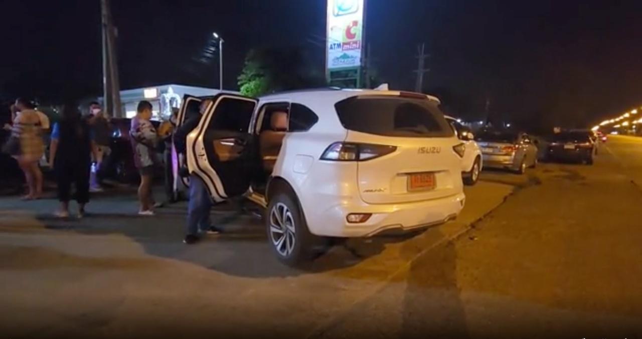 ผู้สื่อข่าวรายงานอีกว่า เวลาต่อมามีผู้เสียหายเข้ามาโวยวายกับเจ้าหน้าที่ตำรวจ หลังถูกลูกหลงถูกวิถีกระสุนปืนยิงเข้าตัวรถ นายโอม คนขับรถยนต์อีซูซุ มิว-เอ็กซ์ ป้ายแดง พร้อมเพื่อนที่นั่งมาด้วยกัน 3 คน ขับรถมาจอดบริเวณภายในปั๊มน้ำมัน เพื่อเข้าพบกับพนักงานสอบสวน ถึงสาเหตุที่รถของตนเองนั้นถูกอาวุธปืนยิงเข้าประตูด้านฝั่งคนนั่งข้างคนขับ จนเกือบจะเสียชีวิต