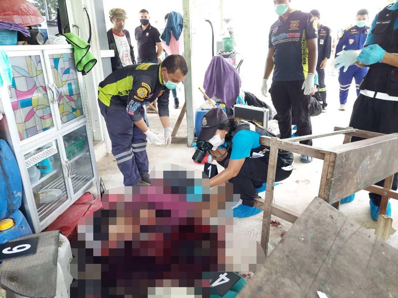เมื่อเวลา 07.30 น. วันที่ 15 ก.ค. 2565 พ.ต.ท.ทักษิณ ภาพสวัสดิ์ สว.(สอบสวน) สภ.จุฬาภรณ์ จ.นครศรีธรรมราช รับแจ้งมีเหตุยิงกันตายภายในคาร์แคร์ "ลูกหมูคาร์แคร์" ไม่มีเลข หมู่ 5 บ้านสามตำบล ต.สามตำบล อ.จุฬาภรณ์ หลังรับแจ้งรายงานให้ผู้บังคับบัญชาทราบแล้วออกไปตรวจสอบพร้อมด้วย พ.ต.อ.ภุวศิษฏ์ วังแก้ว ผกก.สภ.จุฬาภรณ์ พ.ต.ท.เรวัตร แก้วจำรัส รอง ผกก.ป. พ.ต.ท.โกวิทย์ ปล้องบรรจง รอง ผกก.สอบสวน พ.ต.ท.ทนงศักดิ์ สวัสดิโกมล รอง ผกก.สส. พ.ต.ต.ณรงค์ ทองนุ่น สวป. พ.ต.ต.ธัชพงษ์ พริกคง สว.สส. พ.ต.ท.หญิง เปรมฤดี สุนทร ศพฐ. 8 นครศรีธรรมราช นายวีระเกียรติ สุวรรณฤกษ์ ปลัดอาวุโสอำเภอจุฬาภรณ์ นายจรายพงศ์ ศักดิ์ศรี กำนัน ต.สามตำบล นพ.อติพงศ์ ถนนทิพย์ แพทย์เวร รพ.จุฬาภรณ์ จนท.กู้ภัยมูลนิธิสยามรวมใจปู่อินทร์จุฬาภรณ์ มูลนิธิสยามรวมใจร่อนพิบูลย์ และมูลนิธิสยามรวมใจปู่อินทร์ทุ่งใหญ่