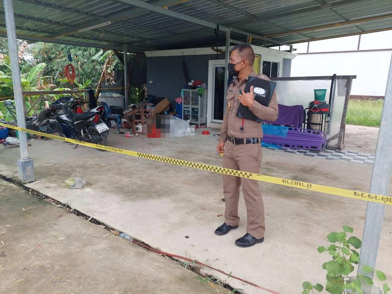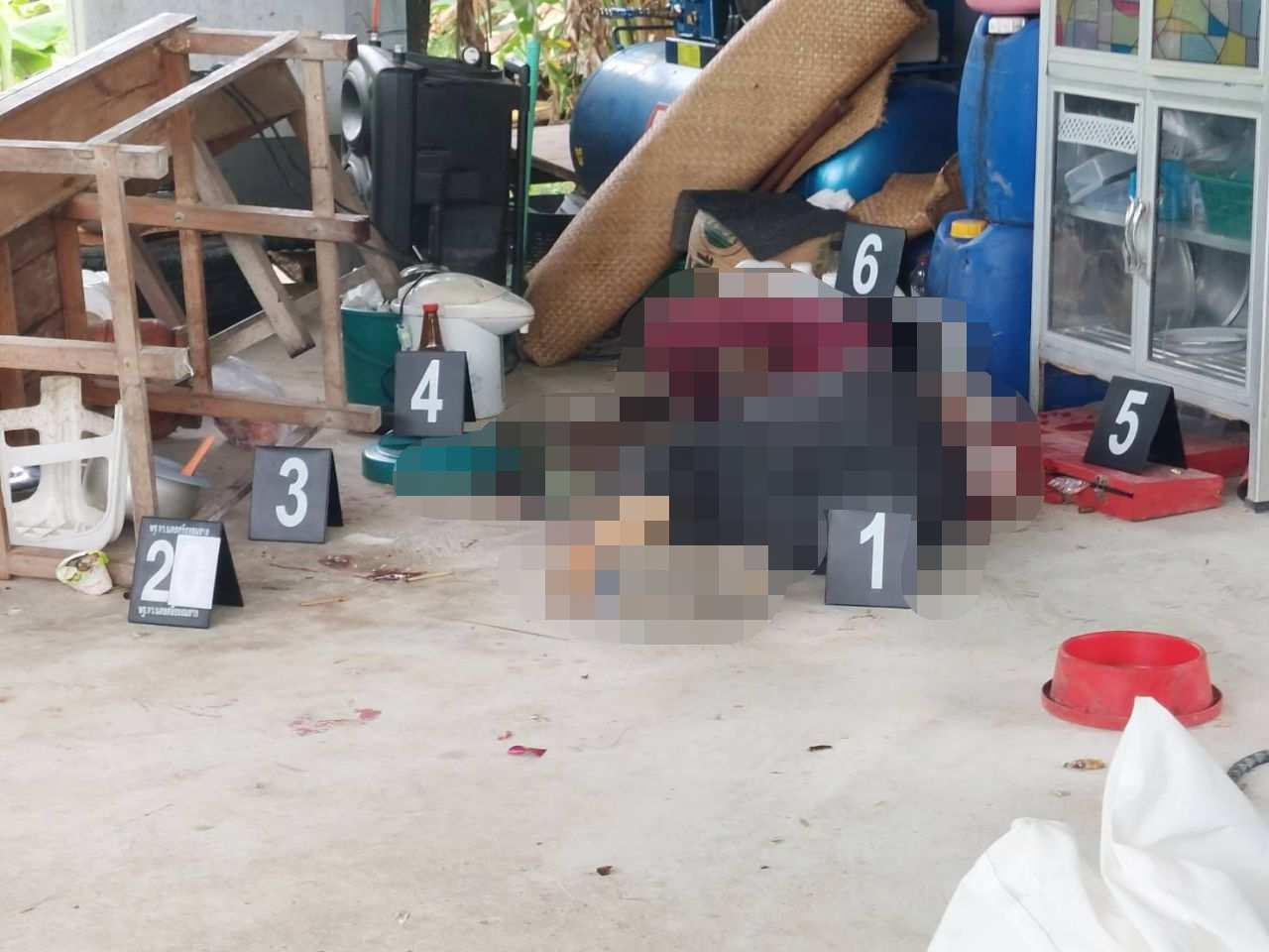 ที่เกิดเหตุพบปลอกกระสุนปืนขนาด 11 มม.ตกอยู่ 4 ปลอก และหัวกระสุนปืนทองแดง 2 หัว นอกจากนี้ยังพบหม้อข้าวภายในมีข้าวที่หุงสุกแล้วเหลืออยู่ครึ่งหม้อ พบถุงแกง 1 ถุง ถ้วยแกง ขวดน้ำปลา ชามข้าว และใบจากพร้อมยาเส้นตกอยู่กระจัดกระจาย ภายในคาร์แคร์มีรถจักรยานยนต์จอดอยู่ 2 คัน อีกคันเป็นรถของผู้ตายยี่ห้อฮอนด้าเวฟ สีดำ ทะเบียน 1 กภ 6474 นครศรีธรรมราช เจ้าหน้าที่จึงเก็บเป็นหลักฐานของกลางทั้งหมด