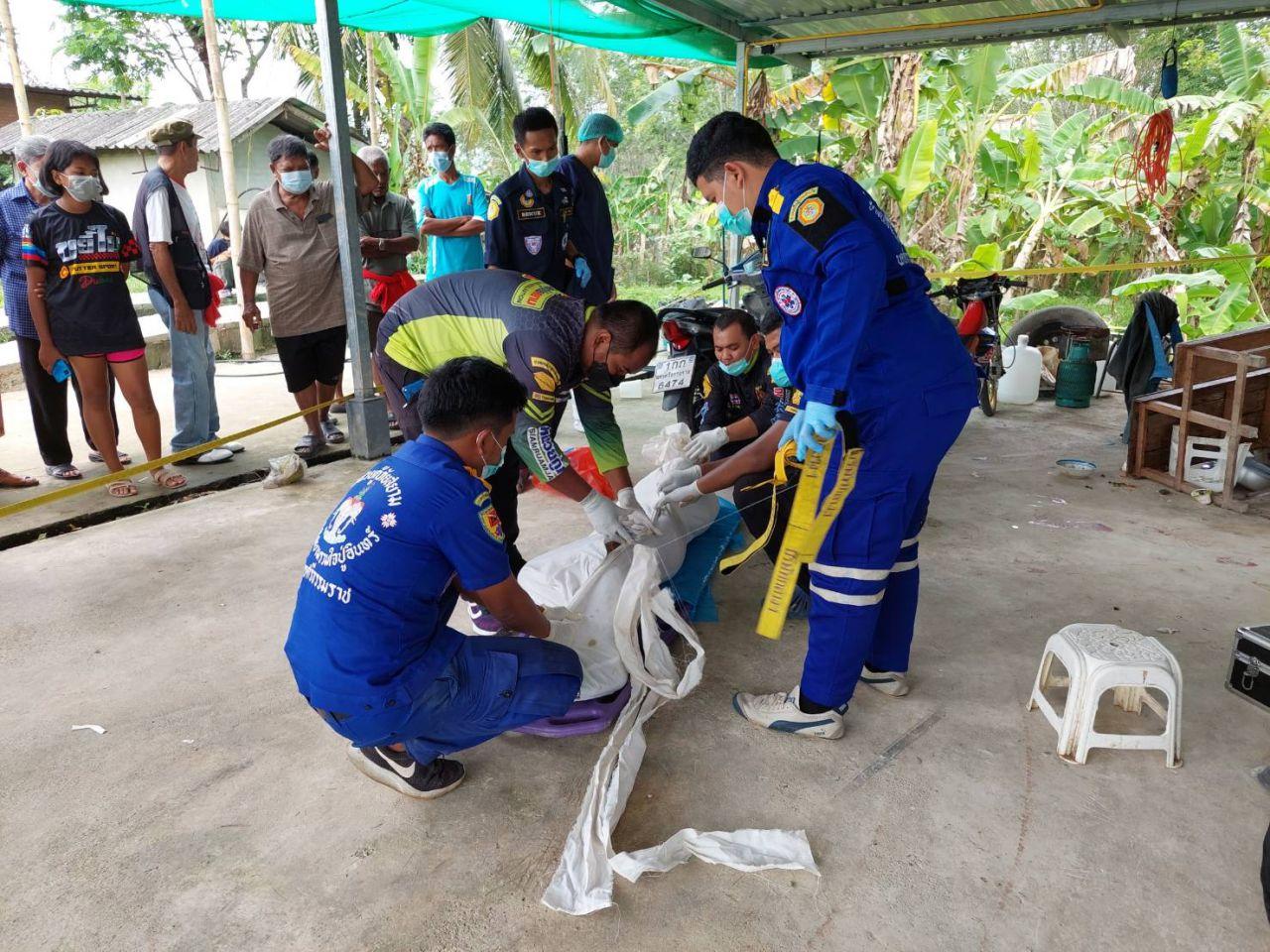 ส่วน นางจินดา แม่ผู้ตายได้เข้ามากอดศพพร้อมกับพูดว่า "แม่มารับลูกกลับบ้านแล้วนะ" จากนั้นก็ให้พระอติพงศ์ อินทปัญโย พระลูกวัดสำนักขัน อ.จุฬาภรณ์ มาทำพิธีเชิญดวงวิญญาณขึ้นรถเจ้าหน้าที่กู้ภัยนำไปชันสูตร ต่อมาทาง รพ.จุฬาภรณ์ได้ส่งศพไปชันสูตรอย่างละเอียดอีกครั้งที่ รพ.มหาราชนครศรีรรมราช ส่วนสาเหตุที่แท้จริงเจ้าหน้าที่อยู่ระหว่างสอบสวนหาสาเหตุ และรวบรวมพยานหลักฐานทั้งหมด.
