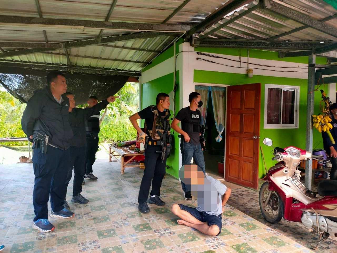 หลังจากสืบสวนทราบว่าหนีคดีมากบดานอยู่ที่บ้านพักคนงานเลี้ยงวัวหลังนี้ โดยขณะเข้าปิดล้อมจับกุม นายสมศักดิ์ ยอมออกมามอบตัวแต่โดยดีและไม่มีเหตุรุนแรงเกิดขึ้น สำหรับพฤติการณ์ของ นายสมศักดิ์ เมื่อวันที่ 2 มีนาคม ที่ผ่านมา เวลาประมาณ 15 นาฬิกา ได้ก่อเหตุขับรถยนต์กระบะมิตซูบิชิ สีขาว ทะเบียน กย 6475 สุราษฎร์ธานี ซึ่งมีภรรยานั่งไปด้วย ไปจอดที่บ้านหลังหนึ่งในพื้นที่ หมู่ 5 ต.พระรักษ์ อ.พะโต๊ะ จ.ชุมพร จากนั้นจึงเรียก 3 พี่น้องที่อยู่ในบ้านให้ออกมาพบ
