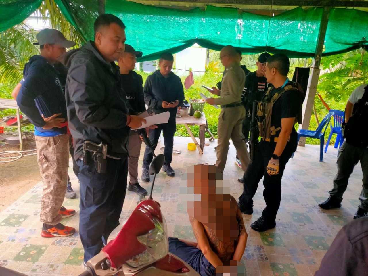 เมื่อเวลา 07.00 น.วันที่ 20 ก.ค.65 ผู้สื่อข่าวรายงานว่า ตำรวจชุดสืบสวนศูนย์ปราบปรามผู้มีอิทธิพลมือปืนรับจ้างและผู้ร้ายสำคัญของสำนักงานตำรวจแห่งชาติ ที่เป็นชุดของ พล.ต.อ.สุชาติ ธีระสวัสดิ์ รองผู้บัญชาการตำแห่งชาติ นำโดย พ.ต.อ.สมพงษ์ สุวรรณวงศ์ รองผู้บังคับการสืบสวนภูธรภาค 9 พ.ต.ท.ปิยะพล แป้นแก้ว รอง ผกก.ปพ.สส.ภ.9 ร่วมกับตำรวจชุดสืบสวน สภ.พะโต๊ะ จ.ชุมพร และชุดสืบสวนตำรวจภูธรจ.ชุมพร นำโดย พ.ต.ท.พรศักดิ์ มงคล รอง ผกก.สส.สภ.พะโต๊ะ พ.ต.ท.พิศาล นวลเสน่ห์ สว.สส.ฯ พ.ต.ท.วรรณะ นาคพงษ์ สว.สส.ภ.จว.ชุมพร จู่โจมเข้าปิดล้อมตรวจค้นบ้านพักคนงานเลี้ยงวัว ภายในสวนปาล์มน้ำมัน ไม่มีเลขที่ พื้นที่หมู่ 5 ต.ท่าบอน อ.ระโนด จ.สงขลา เพื่อจับกุม นายสมศักดิ์ ปานโบ หรือโล้น อายุ 37 ปี ชาวบ้าน ต.ทุ่งคาวัด อ.ละแม จ.ชุมพร ผู้ต้องหาตามหมายจับของศาลจังหวัดหลังสวนข้อหา “ฆ่าผู้อื่นโดยเจตนา, พยายามฆ่าผู้อื่นโดยเจตนา, มีอาวุธปืนและเครื่องกระสุนปืนไว้ในครอบครอง โดยไม่ได้รับอนุญาต, พาอาวุธปืนติดตัวไปในเมือง หมู่บ้าน หรือทางสาธารณะโดยไม่ได้รับอนุญาต ให้มีอาวุธปืนติดตัวและไม่มีเหตุจำเป็นหรือเร่งด่วนตามสมควรแก่พฤติการณ์”