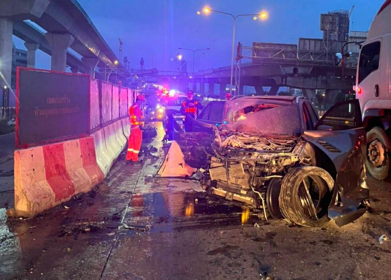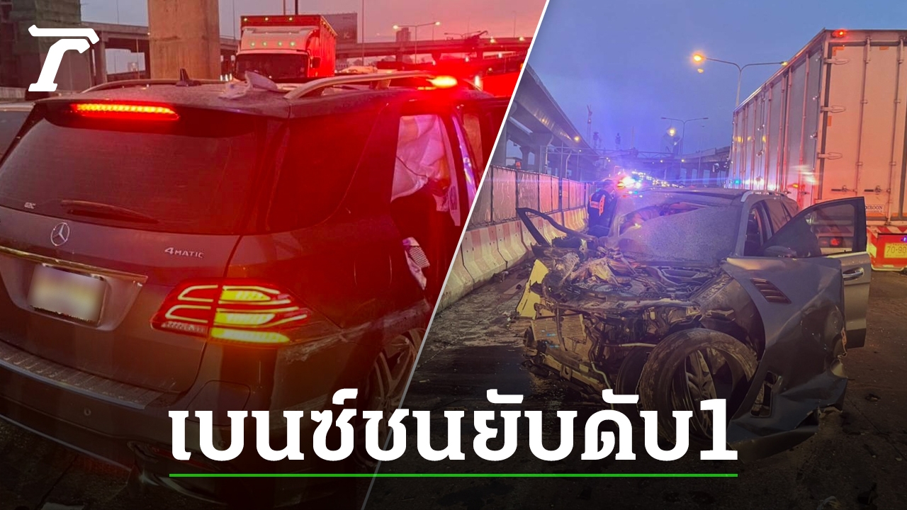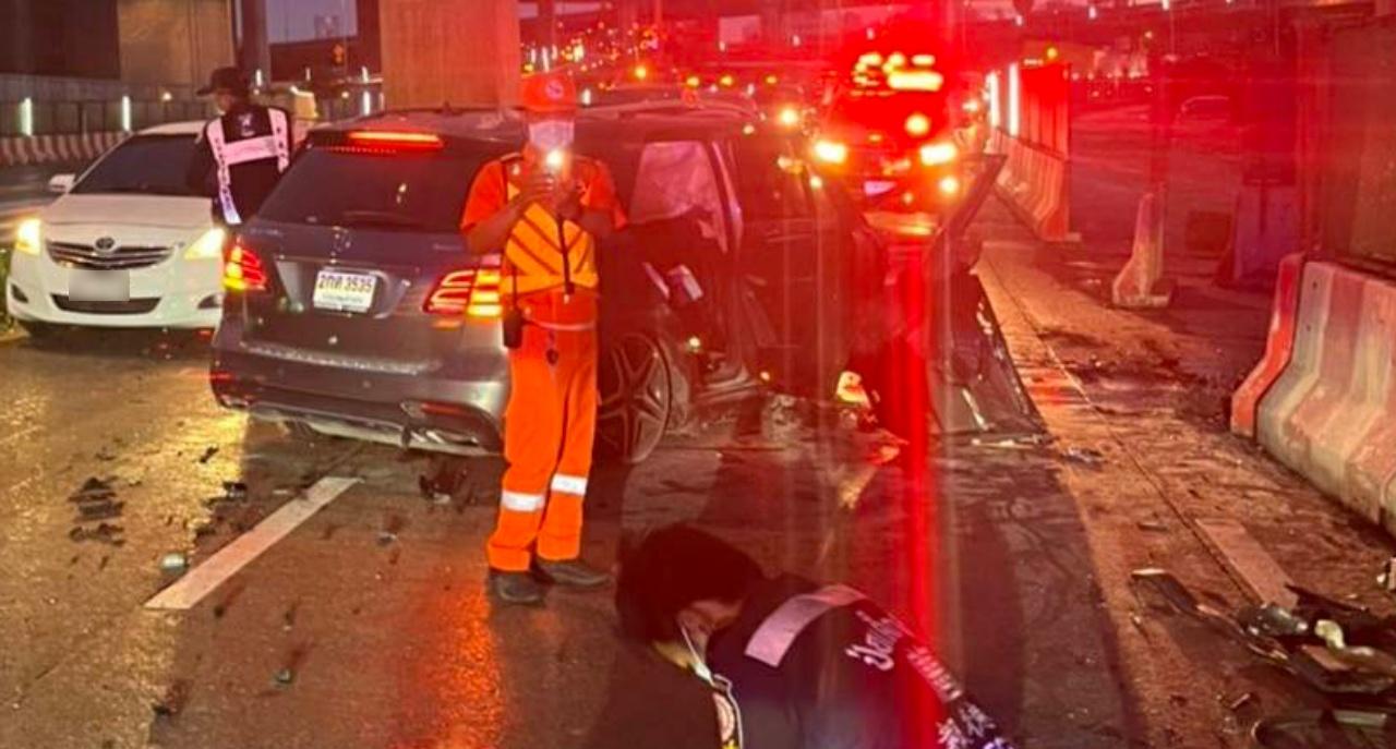 อุบัติเหตุรถเมอร์เซเดส-เบนซ์ GLE 500e พุ่งชนแบริเออร์บนทางพิเศษเฉลิมมหานคร เชิงทางขึ้นสะพานพระราม 9 จากฝั่งท่าเรือมุ่งหน้าฝั่งธนบุรี หนุ่มผู้บริหารบริษัทค้าเหล็กรายใหญ่ของจังหวัดสมุทรสาคร เสียชีวิตในจุดเกิดเหตุ