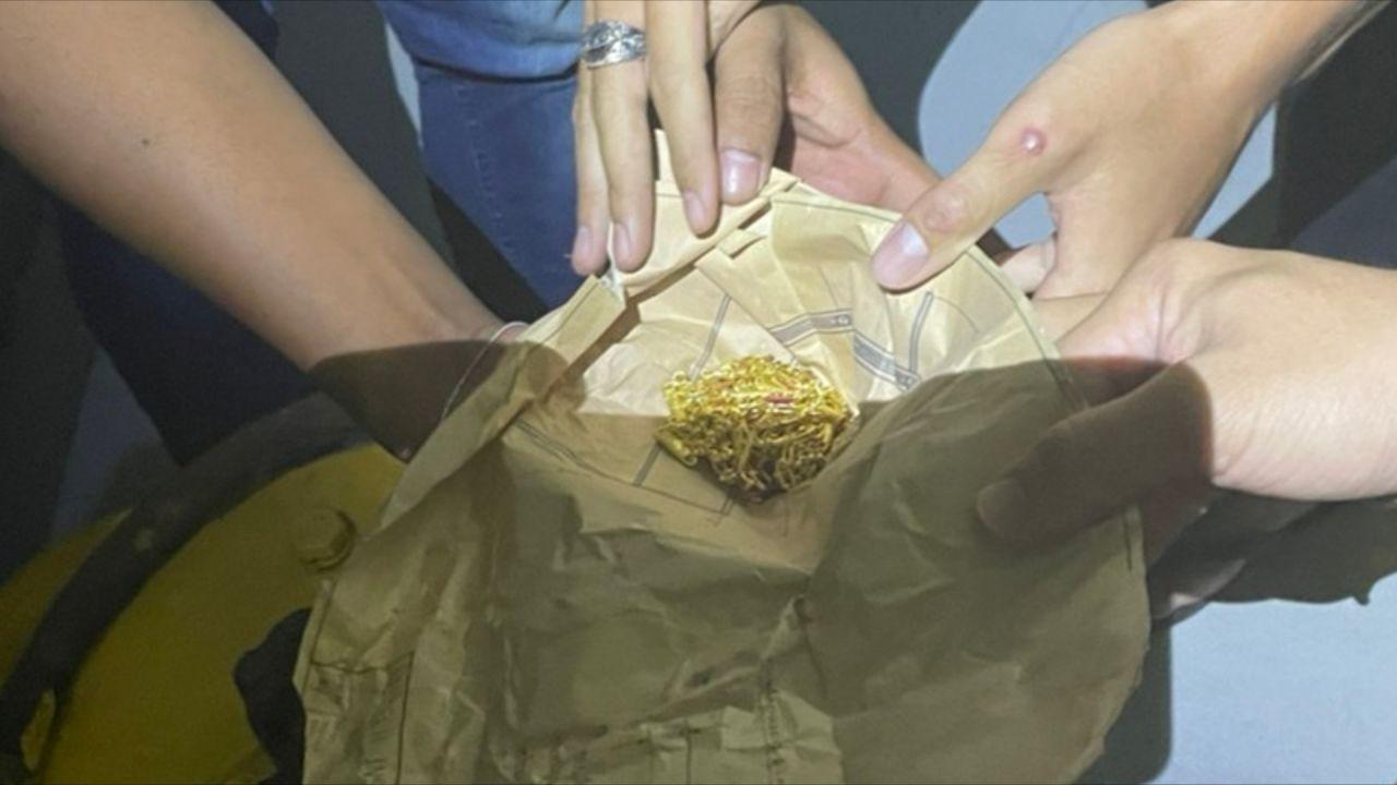 ผู้ต้องหาจี้ชิงทองให้การด้วยว่า ขณะก่อเหตุได้แกล้งทำเป็นคนเดินขาเป๋ เพื่อตบตาเจ้าหน้าที่ ก่อนนำสร้อยคอทองคำ 5 เส้นที่จี้มาได้ไปฝังดินไว้ที่ป่ามันสำปะหลังใกล้กับมหาวิทยาลัยที่ตัวเองเรียนอยู่ ส่วนอาวุธปืนที่ใช้ก่อเหตุเป็นปืนปลอม โดยหลังคนร้ายเปิดปากรับสารภาพ ตำรวจได้พาไปค้นของกลางได้ครบกลับคืนมาทั้ง 5 เส้นดังกล่าว.