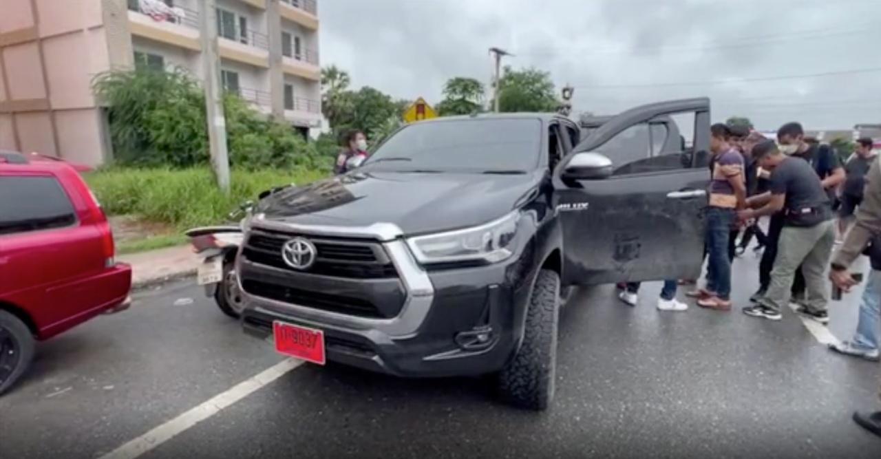 ที่บริเวณกลางถนน พบรถยนต์กระบะ โตโยต้า สีขาวตอนเดียว หมายเลขทะเบียน บว 8200 พระนครศรีอยุธยา สภาพด้านหน้าถูกชนพังเสียหาย ฝากระโปรงรถมีรอยถูกยิงด้วยอาวุธปืน เป็นรถของโรงน้ำแข็งอโยธยา บนถนนพบปลอกกระสุนปืนขนาดต่างๆ จำนวนมากเกลื่อนถนน