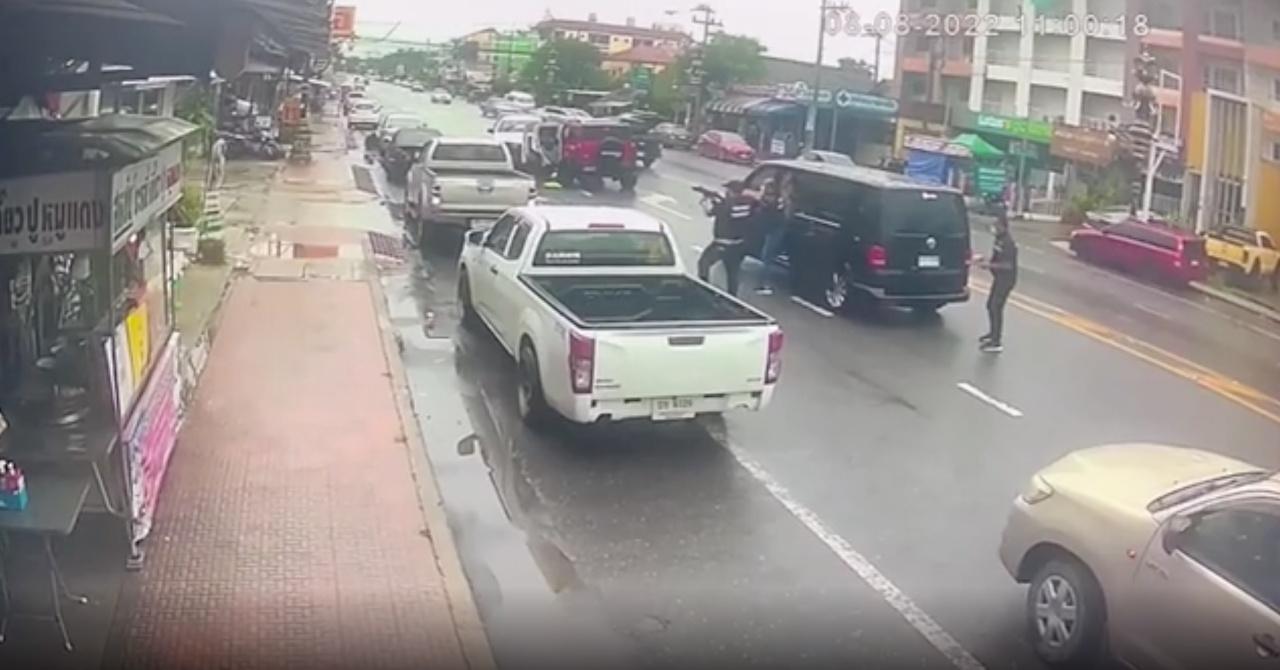 ซึ่งจากการตรวจสอบภาพจากกล้องวงจรปิด พบว่ารถยนต์กระบะบรรทุกน้ำแข็งของโรงน้ำแข็งอโยธยา ได้ขับเลี้ยวออกมาจากซอย ใกล้เพื่อสกัดรถยนต์แฮมเมอร์ สีแดง กลุ่มของโรงน้ำแข็งพันล้านพระนครศรีอยุธยา จนเกิดการชนกันแล้วต่างฝ่ายใช้อาวุธปืนยิงกัน พากันหลบหนี และมีรถตู้ของกำนันตำบลเกาะเรียน พร้อมอาวุธปืนเข้ามาควบคุมก่อนที่ตำรวจจะมาถึง