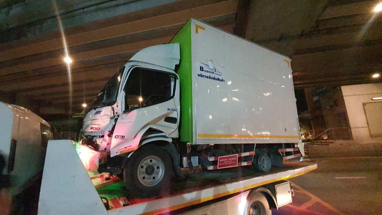 ตร.สำโรงเหนือไล่จับรถขนสินค้าขับแหกด่านบนถนนศรีนครินทร์ ชนรถชาวบ้านเสียหายนับสิบคัน ก่อนไปจนมุมที่ อ.บางไทร เพราะยางระเบิดวิ่งหนีลงน้ำก่อนจับตัวได้ สารภาพเสพยาบ้ามา เจอด่านกลัวถูกจับเลยหนี