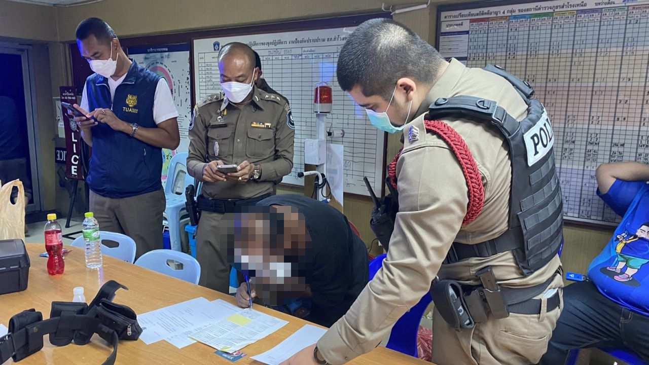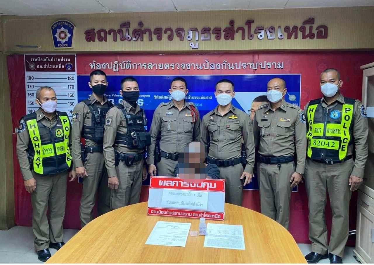 จากนั้นผู้ก่อเหตุจึงจอดรถข้างทาง ก่อนที่จะพุ่งตัวออกทางหน้าต่างข้างซ้ายหลบหนีลงไปในน้ำ เจ้าหน้าที่จึงกระโดดลงน้ำไล่ติดตามไปอย่างกระชั้นชิดจะสามารถจับกุมตัวเอาไว้ได้ โดยที่ผู้ก่อเหตุได้พยายามถอดกางเกงยีนส์ขายาวทิ้ง แต่เจ้าหน้าที่ตำรวจค้นหาจนพบ และจากการตรวจสอบพบว่าในกระเป๋ากางเกงข้างขวาพบยาบ้าบรรจุอยู่ในถุงพลาสติกกดปิด-ดึงเปิดจำนวน 1 เม็ด เจ้าหน้าที่จึงได้คุมตัวและตรวจยึดรถยนต์กระบะตู้ทึบคันที่ก่อเหตุ และนำตัวคนขับและของกลางกลับมาทำการสอบสวนที่โรงพัก สภ.สำโรงเหนือ