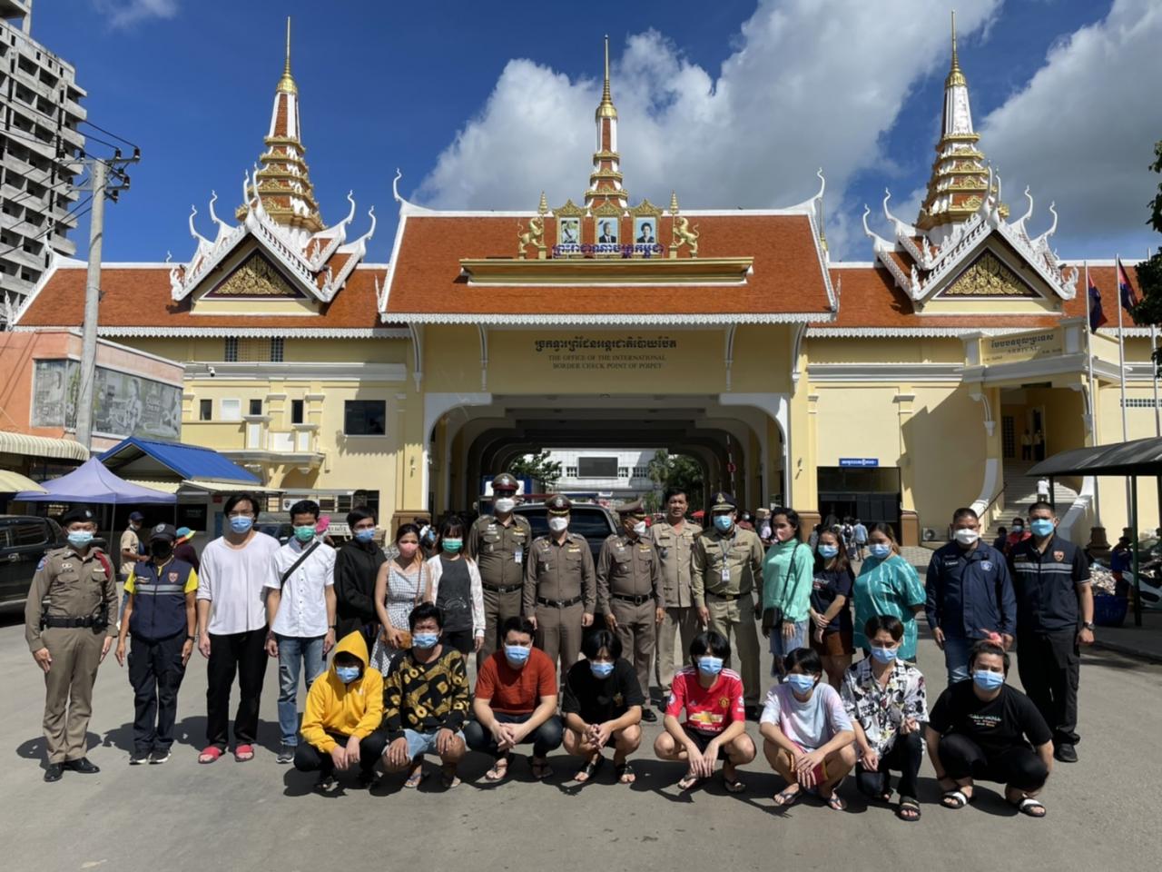 จากนั้น พ.ต.อ.รุ่ง ทองมนต์ ผกก.ตม.จว.สระแก้ว ได้นำตัวคนไทยทั้ง 16 คน เข้าสู่ขั้นตอนการตรวจคัดกรองโรคโควิด-19 และฝีดาษวานร จาก จนท.ด่านควบคุมโรคติดต่อระหว่างประเทศ อรัญประเทศ บริเวณจุดคัดกรองด่าน ตม.อรัญประเทศ ก่อนเข้าสู่กระบวนการตรวจคนเข้าเมือง จากนั้น สภ.คลองลึก และ จนท.พม.สระแก้ว นำไปสอบสวนซักประวัติเพื่อทำการคัดแยกว่าผู้ใดอยู่ในข่ายตกเป็นเหยื่อถูกหลอกลวง และผู้ใดอยู่ในข่ายเป็นผู้สมรู้ร่วมคิดกับขบวนการดังกล่าว เพื่อดำเนินการตามกฎหมายต่อไป