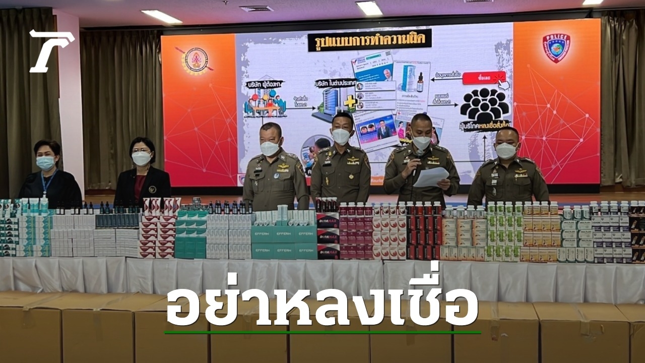 เพื่อบรรยายสรรพคุณเกินจริง โน้มน้าวให้ผู้ซื้อหลงเชื่อตัดสินใจซื้อสินค้าดังกล่าวและการจัดส่งสินค้าแบบเก็บเงินปลายทาง ผ่านทางเว็บไซต์ต่างประเทศ มีการกล่าวอ้างบุคคลเพื่อเพิ่มความน่าเชื่อถือ เช่น แพทย์ เภสัชกร นักวิทยาศาสตร์ นักวิจัย โดยเนื้อความเหมือนการให้ความรู้และสอดแทรกผลิตภัณฑ์ที่ต้องการขายลงไป ทำให้คนตกเป็นเหยื่อได้ง่าย และขอเตือนไปยังผู้คิดจะกระทำความผิดหลอกลวงคนอื่นด้วยวิธีการเอาความเจ็บป่วย หรือความเยาว์วัยมาหลอกลวงขายสินค้าให้กับผู้บริโภค หากพบจะดำเนินการทางกฎหมายให้ถึงที่สุด ทั้งนี้ผู้ที่พบเห็นการกระทำความผิดกฎหมายในลักษณะอื่นใด สามารถแจ้งเบาะแสได้ที่สายด่วน ปคบ. 1135 หรือ เพจ ปคบ.เตือนภัยผู้บริโภคได้ตลอดเวลา