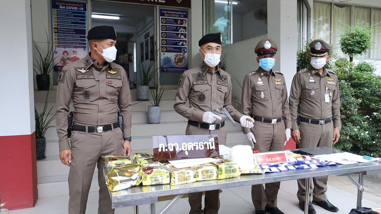 เมื่อเวลา 10.00 น. วันที่ 8 กันยายน 2565 ที่หน้ากองบังคับการตำรวจภูธรจังหวัดอุดรธานี พล.ต.ต.พิษณุ อุณหเสรี ผบก.ภ.จ.อุดรธานี พ.ต.อ.นพดล เพ็ชรสุทธิ์ รอง ผบก.ภ.จ.อุดรธานี พ.ต.อ.จามร อันดี ผกก.สภ.เมืองอุดรธานี พ.ต.ท.นพดล วิเศษศรี รอง ผกก.หน.สภ.นาข่า อ.เมืองอุดรธานี ร่วมกันแถลงข่าวจับนายนันทวัฒน์ สุวรรณจัก หรือเบนซ์ อายุ 25 ปี ชาวบ้าน หมู่ 5 บ้านดู่ ต.บ้านขาว อ.เมือง จ.อุดรธานี ของกลางยาไอซ์ 18 ถุง น้ำหนัก 18 กิโลกรัม ยาบ้า 4,757 เม็ด อาวุธปืนลูกซองสั้น 1 กระบอก กระสุนปืนลูกซองเบอร์ 12 จำนวน 5 นัด โดยจับกุมได้ที่บ้านหลังหนึ่งในพื้นที่หมู่ 10 ต.บ้านขาว อ.เมือง จ.อุดรธานี