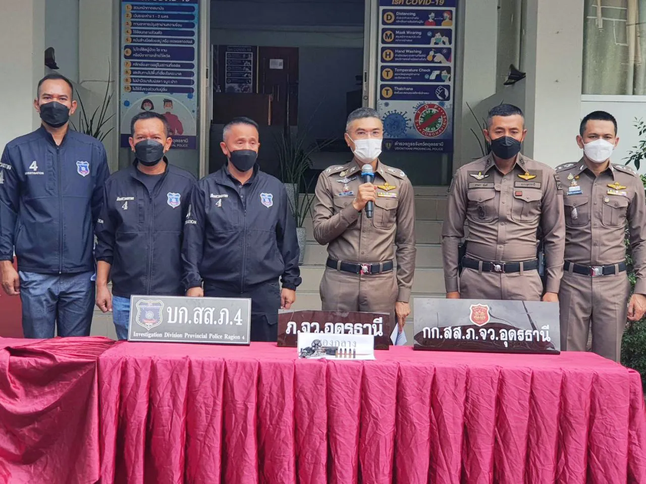 เมื่อเวลา 10.30 น. วันที่ 10 กันยายน 2565 ที่หน้ากองบังคับการตำรวจภูธรจังหวัดอุดรธานี พล.ต.ต.ณัฐนนท์ ประชุม ผบก.สส.ภ.4 พล.ต.ต.พิษณุ อุณหเสรี ผบก.ภ.จ.อุดรธานี พ.ต.อ.พันธุ์เพชร เหล่ากำเนิดเพชร ผกก.สส.ภ.จ.อุดรธานี พ.ต.อ.จามร อันดี ผกก.สภ.เมืองอุดรธานี พ.ต.อ.ชาญณรงค์ มากพิสุทธิ์ ผกก.สส.1 บก.ภ.4 ร่วมกันแถลงข่าวจับนายทะนงศักดิ์ แก้วเชียงหวาง อายุ 30 ปี ชาวบ้าน หมู่ 5 ต.นาพู่ อ.เพ็ญ จ.อุดรธานี และ น.ส.พรพรรณ ผาแก้ว อายุ 28 ปี ชาวบ้าน หมู่ 9 ต.เมืองเพีย อ.กุดจับ จ.อุดรธานี สามีภรรยา