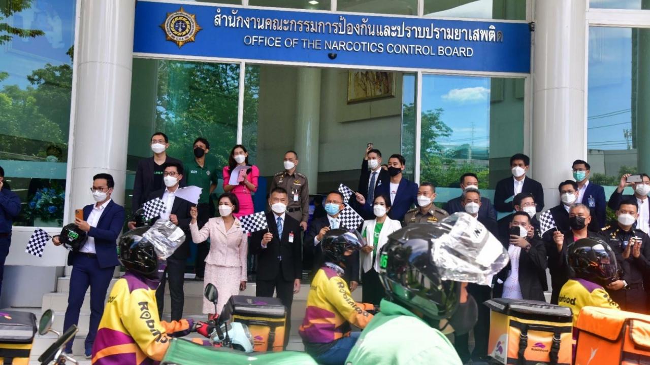 "ผมจึงอยากขอความร่วมมือทุกท่าน ทั้งไรเดอร์และวินมอเตอร์ไซค์ ให้ช่วยกันเป็นหูเป็นตาให้กับทางราชการ เพื่อปัญหายาเสพติดจะได้ดีขึ้น โดยทุกท่านสามารถแจ้งเบาะแสได้ที่สายด่วน ป.ป.ส. 1386 ซึ่งจะมีรางวัลการแจ้งเบาะแส 5% ของมูลค่าทรัพย์ที่ยึดได้ โดยอย่าคิดว่าแจ้งรายเล็กจะได้น้อย เพราะหากมีการขยายผลไปสู่รายใหญ่ได้ คนแจ้งก็จะได้รางวัลนำจับไปด้วย ซึ่งปีนี้เราสามารถยึดทรัพย์เครือข่ายยาเสพติดได้แล้ว 10,300 ล้านบาท จากเป้าหมายที่วางไว้ 10,000 ล้านบาท" รมว.ยุติธรรม กล่าว