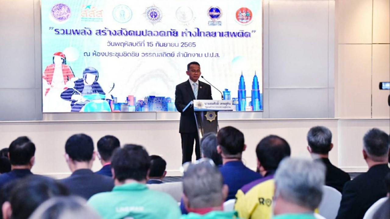 เมื่อวันที่ 15 ก.ย.65 นายสมศักดิ์ เทพสุทิน รัฐมนตรีว่าการกระทรวงยุติธรรม เป็นประธานเปิดงาน "รวมพลัง สร้างสังคมปลอดภัย ห่างไกลยาเสพติด" เพื่อรณรงค์สร้างการรับรู้ และสร้างภูมิคุ้มกันยาเสพติดในกลุ่มแรงงานนอกระบบ โดยมี น.ส.ณัฐธ์ภัสส์ ยงใจยุทธ ผู้ช่วยรัฐมนตรีประจำกระทรวงยุติธรรม นายวิชัย ไชยมงคล เลขาธิการ ป.ป.ส. ผู้บริหารกระทรวง กองบัญชาการตำรวจนครบาล กรมสวัสดิการและคุ้มครองแรงงาน กรมการขนส่งทางบก ผู้บริหารจากบริษัทเดลิเวอร์รี่ 7 แห่ง เช่น ไลน์แมน แกร็ป ฟู้ดแพนด้า โรบินฮู้ด แอร์เอเชีย ซุปเปอร์แอพ ช้อปปี้ ลาล่ามูฟ สมาคมผู้ขับขี่รถจักรยานยนต์รับจ้าง และเครือข่ายภาคประชาชนกองทุนแม่ของแผ่นดิน กว่า 100 คน เข้าร่วมงาน