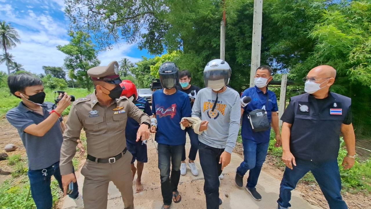 ตำรวจคุม 3 โจ๋ อุ้มฆ่าเด็ก 14 ทำแผนประกอบรับคำสารภาพ ชี้จุดหิ้วตัวไปซ้อม เพื่อเค้นที่ซ่อนขโมยทอง ก่อนรุมสกรัมและปล่อยเหยื่อเสียชีวิตที่บ้านพักน้าชาย
