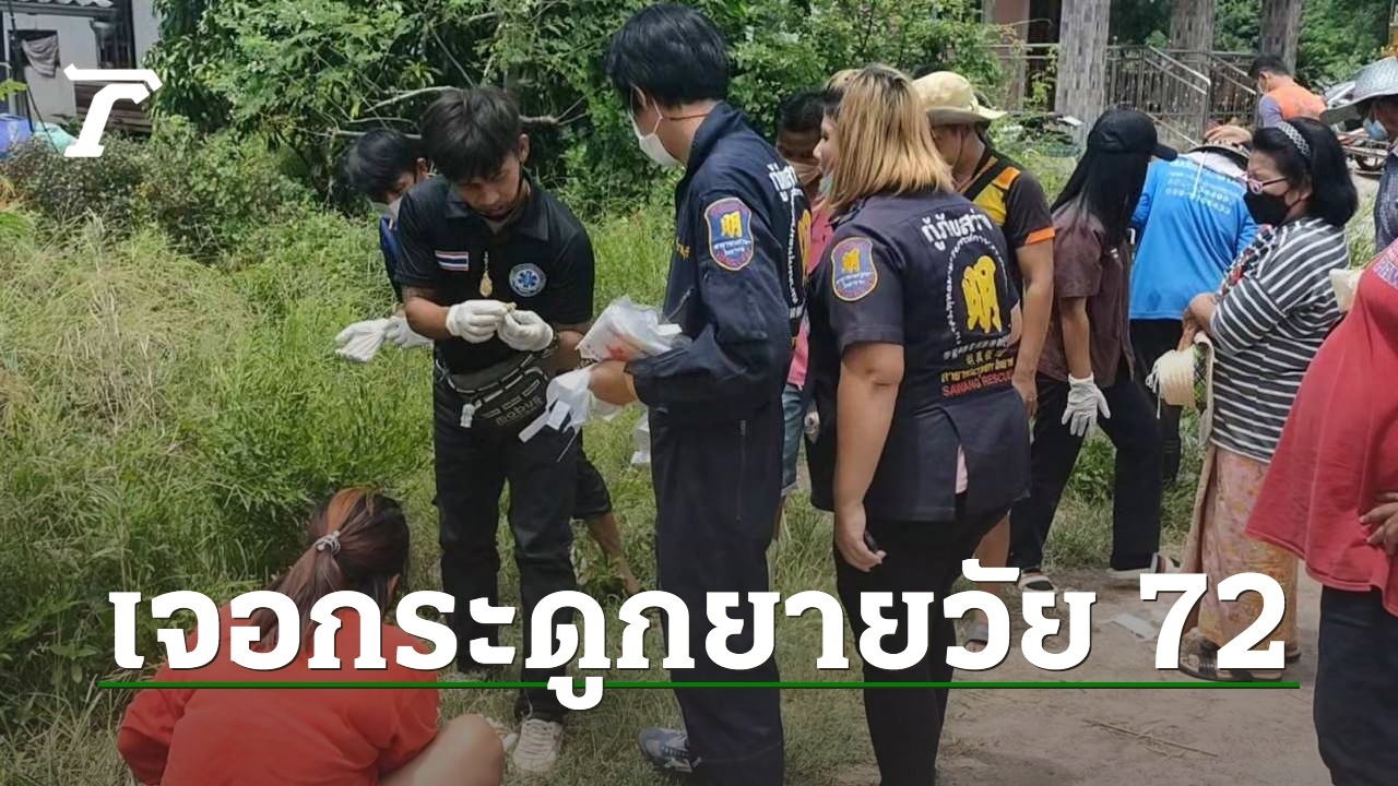 พบแล้วยายวัย 72 ที่จมน้ำหายไป 4 วันแล้วหาไม่เจอ หลังมีคนแจ้ง สภ.เขาดิน พบกะโหลกศีรษะกับเศษกระดูก คาดถูกฝูงสุนัขรุมแทะหมด โดยยังพบหัวเข็มขัดกับผ้าถุง ญาติดูแล้วยืนยันเป็นของคนที่หายจริง