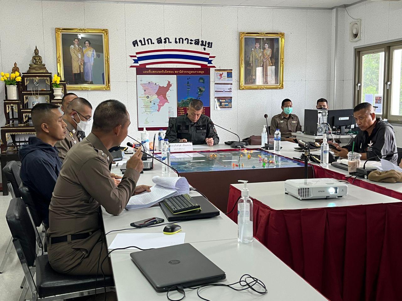 ขณะเดียวกัน พล.ต.ต ณภันต์วุฒิ เลี่ยมสงวน ผบก สส.ภ.8, พ.ต.อ.กฤตินิธิ ทองทิพย์ รอง.ผบก.ภ.จว.สุราษฎร์ธานี รรท.ผกก.สภ.เกาะสมุย, พ.ต.อ.พิเชษฐ์พงศ์ แจ้งคายคม ผกก.บก.2 บก.ทท.3, พ.ต.อ.ธัชพงศ์ วงศ์พัฒนานิวาส ผกก.สส.2 บก.สส.ภ.8, พ.ต.ท.กิตติศักดิ์ แดงไชย สว.กก.2 สส.ภ.8, ร.ต.อ.อรุร มูสิกิ้ม รอง สว.ตม.จว.สุราษฎร์ธานี พร้อมกำลังตำรวจสืบสวนได้เรียกประชุม ตำรวจสืบสวน ตำรวจท่องเที่ยว ตำรวจตรวจคนเข้าเมือง ประชุมความคืบหน้าในการติดตามคนร้ายที่ก่อเหตุในครั้งนี้ และรวบรวมพยานหลักฐาน เพื่อจะออกหมายผู้ที่ก่อเหตุเพิ่มเติม