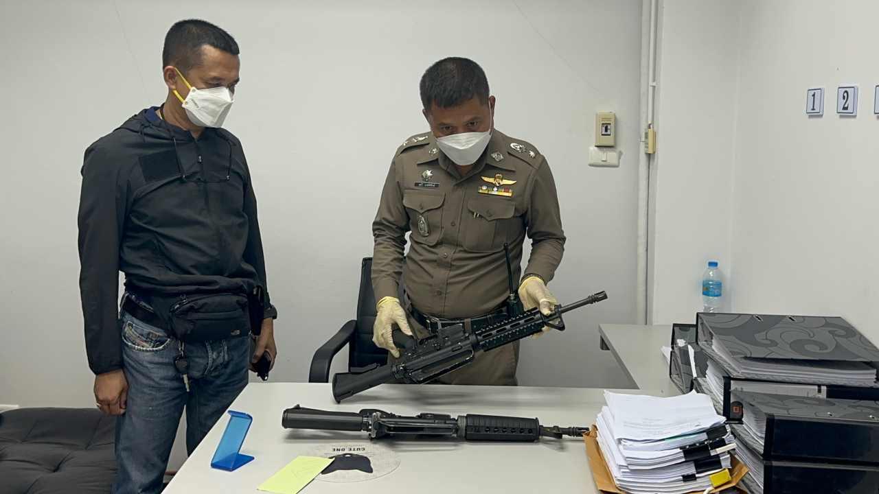 วันที่ 12 ตุลาคม พล.ต.ต.ศรัญญู ชำนาญราช ผบก.ภ.จว. สุราษฎร์ธานี ได้รับรายงานจาก พ.ต.อ.สมบัติ ฉ่ำแสง รอง ผบก.ภ.จว.สุราษฎร์ธานี และคณะทำงานชุดปฏิบัติการขยายผล “สยบอันดามัน” ได้ตรวจพบอาวุธปืนสงคราม เอ็ม 16 จำนวน 2 กระบอกถูกซุกซ่อนอยู่ในรถยนต์ของกลาง ซึ่งได้ทำการตรวจยึดมาเมื่อวันที่ 16 สิงหาคม 2565 จากการขยายผลคดีจับกุมยาบ้า จำนวน 1.4 ล้านเม็ดของ สภ.พุนพิน จ.สุราษฎร์ธานี