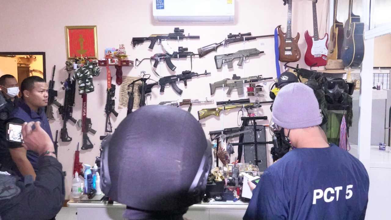ผลการตรวจค้นพบบีบีกัน 46 กระบอก อาวุธปืนยาวขนาด .22 จำนวน 2 กระบอก ไม่มีทะเบียน 1 กระบอก เครื่องกระสุนขนาด .22 จำนวน 30 นัด ทั้ง 4 รายการตรวจค้นพบที่ บ้านเลขที่ 196/18 ม.5 ถ.อำเภอ ต.มะขามเตี้ย อ.เมือง จ.สุราษฎร์ธานี ซึ่งเป็นบ้านที่นายอภิสิทธิ์ มั่งมี พักอาศัยอยู่ จับกุมตัวนายอภิสิทธิ์พร้อมแจ้งข้อกล่าวหาว่า "มีอาวุธปืนไว้ในครอบครองโดยไม่ได้รับอนุญาต" ต่อมาเจ้าหน้าที่ พฐ. ตรวจพิสูจน์ปืนบีบีกันทั้งหมด โดยมี นายวิชวุทย์ จินโต ผวจ.สุราษฎร์ธานี เข้าร่วมการตรวจสอบ หลังเสร็จสิ้นการตรวจสอบจะนำตัวพร้อมของกลาง นำส่งพนักงานสอบสวนเพื่อดำเนินคดีตามกฎหมายต่อไป