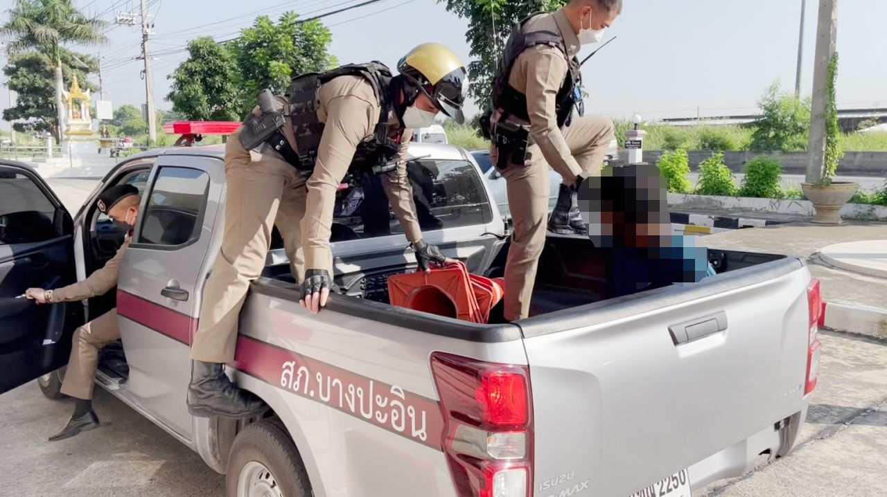 เจ้าหน้าที่ตำรวจจึงได้ควบคุมตัว พร้อมผ้าขาวม้า และเสื้อผ้าที่ใช้ก่อเหตุ นำขึ้นรถตำรวจมา สภ.บางปะอิน เพื่อทำการสอบสวนเพิ่มเติม