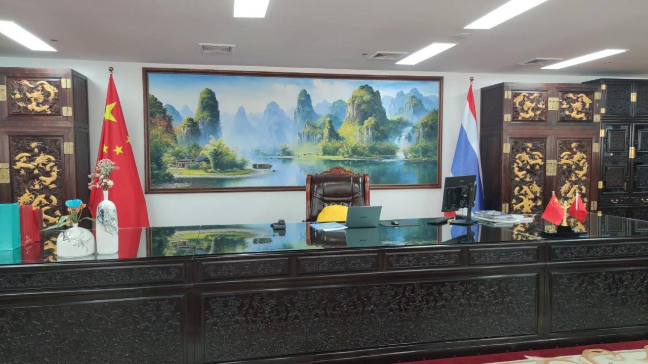 ขณะที่ พล.ต.ต.พันธนะ กล่าวว่า ผู้ต้องหาอ้างว่าจะเข้ามาทำธุรกิจในไทย จึงเข้าร่วมสมาคมดังกล่าว 3-4 ปีแล้ว แต่ยังไม่ทันจะได้เริ่มธุรกิจ ซึ่งยังไม่แน่ชัดว่าผู้ต้องหามีความเกี่ยวข้อง หรือดำรงตำแหน่งใดในสมาคม โดยจะต้องมีการตรวจสอบรายชื่อกับทางสมาคมอีกครั้ง นอกจากนี้ในการตรวจค้นยังพบชุดลักษณะคล้ายเครื่องแบบทหารที่มีเข็มกลัดชื่อของผู้ต้องหา รวมถึงรถของผู้ต้องหาก็เป็นรถติดธงประเทศไทยและจีนทั้ง 2 ฝั่ง คล้ายกับรถของสถานทูต และยังมีรถตำรวจนำขบวนอีก 1 คัน ซึ่งหลังจาก รอง ผบ.ตร.ตรวจสอบทะเบียนด้วยสายตาแล้ว คาดว่าเป็นทะเบียนรถปกติ ไม่ใช่รถของสถานทูตแต่อย่างใด จึงเชื่อว่าเป็นการพยายามทำให้ดูเหมือนรถของสถานทูตเท่านั้น ส่วนรถตำรวจก็น่าจะเป็นรถปลอม นอกจากนี้ยังพบอาวุธปืนตั้งโชว์ตามโถงทางเดินอีก 6 กระบอก ซึ่งส่วนหนึ่งเป็นปืนบีบีกัน