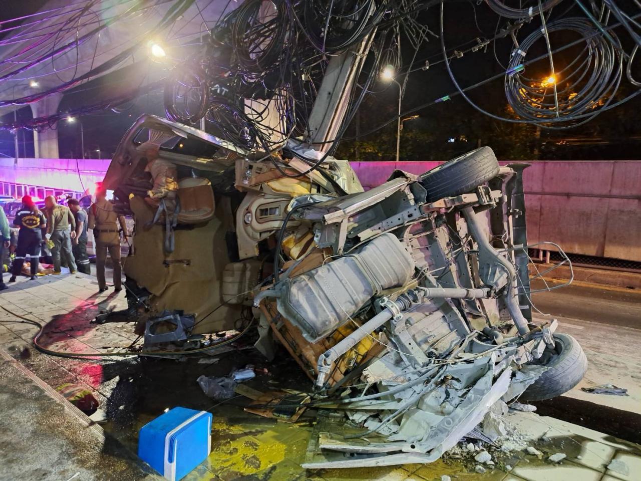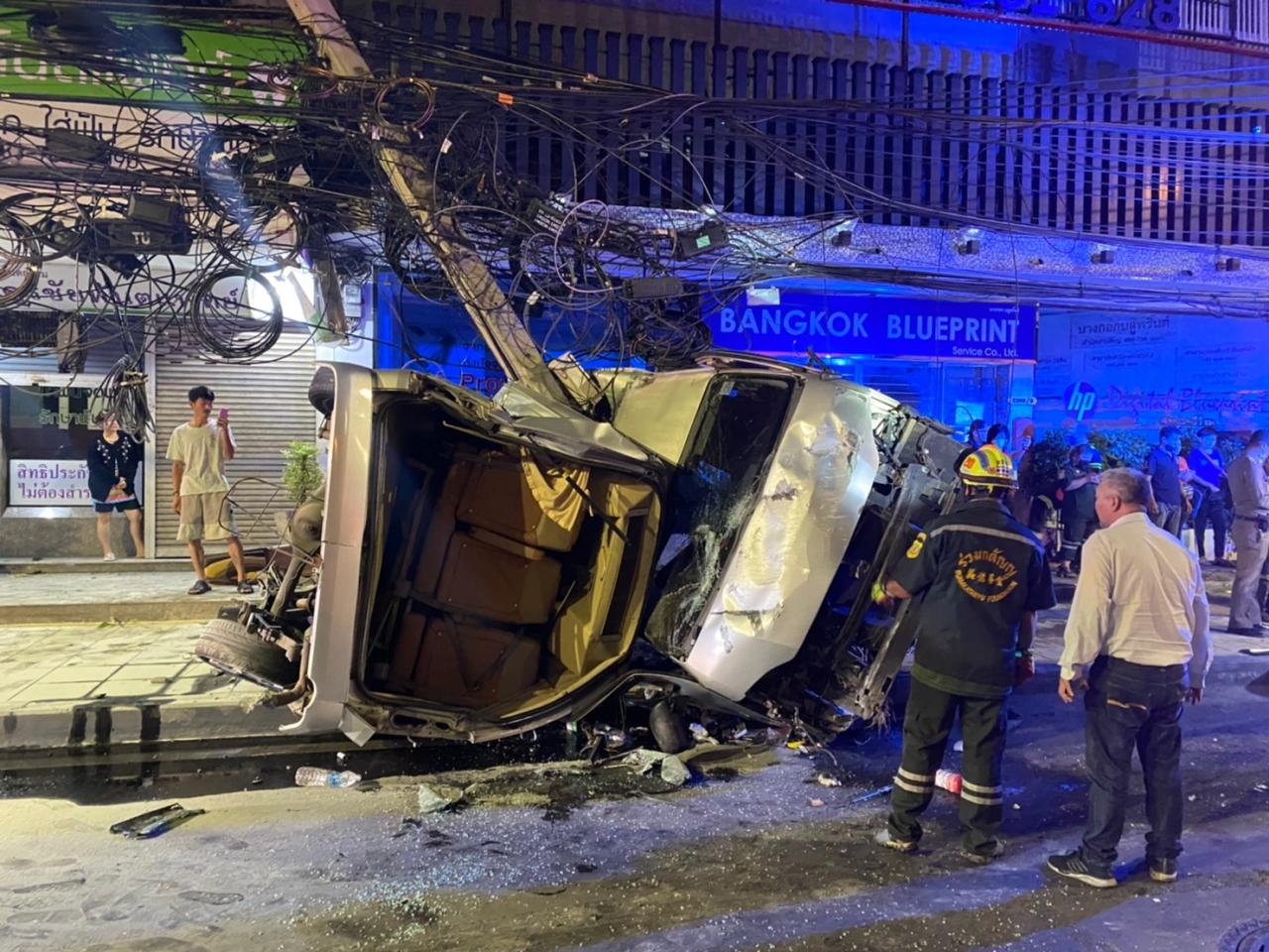 เมื่อเวลา 04.50 น.วันที่ 12 พฤศจิกายน 2565 ร.ต.อ.จีระศักดิ์ มะลิ รอง สว.(สอบสวน)สน.บางเขน รับแจ้งมีอุบัติเหตุรถตู้เสียหลักพุ่งชนเสาไฟฟ้ามีผู้ได้รับบาดเจ็บ ก่อนถึงแยกเกษตรขาเข้า ถนนพหลโยธิน แขวงลาดยาว เขตจตุจักร กทม. จึงรุดตรวจสอบพร้อมประสานการไฟฟ้านครหลวง และอาสาสมัครมูลนิธิร่วมกตัญญู