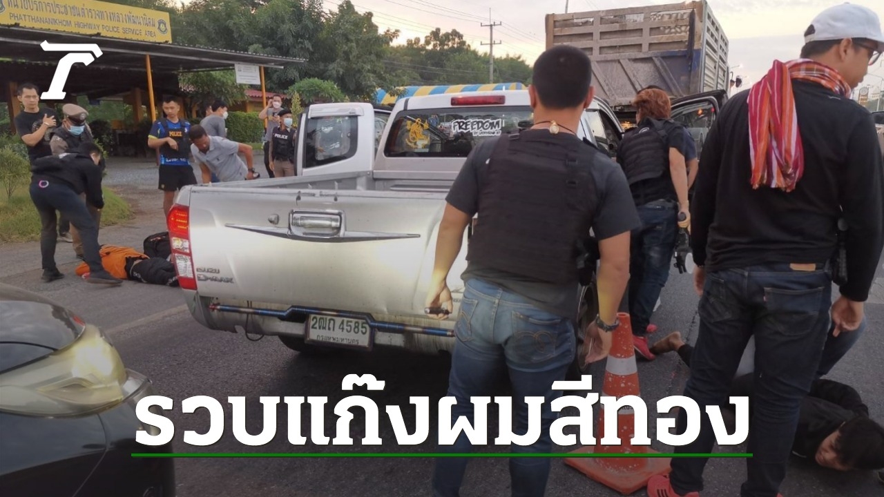 เมื่อวันที่ 13 พ.ย. 65 พล.ต.อ.ชินภัทร สารสิน รอง ผบ.ตร.(กม) ในฐานะ ผอ.ศอ.ปส.ตร. สั่งการให้ พล.ต.ท.สรายุทธ สงวนโภคัย ผบช.ปส. พล.ต.ต.ธนรัชน์ สอนกล้า ผบก.ปส.2 นำกำลังหน่วยปฏิบัติการพิเศษพัทยา กก.1 บก.ปส.2 ร่วมกับ บก.ขส.จับกุมเครือข่ายแก๊งผมทอง คือ 1. นายณภัทร คุณหอม อายุ 22 ปี, 2. นายวัชระ อ่อนแหย๋ม อายุ 25 ปี 3. นายวรเมธ เสวกวงษ์, อายุ 23 ปี 4. นายภูภัคเอก เดชะวงศ์ อายุ 30 ปี 5. นายกิตติศักดิ์ นามวรรค อายุ 20 ปี 6. น.ส.กรวิภา ไตรสุ อายุ 20 ปี 7. นายโชคเจริญ กรัดณรงค์ อายุ 27 ปี 8. นายทัตพงษ์ กุวะสาร อายุ 22 ปี 9. นายธนพล อุทัยพจน์ อายุ 27 ปี สกัดจับได้ที่บริเวณถนนสระบุรี-หล่มสัก บริเวณหลักกิโลเมตรที่ 9 ต.บีลัง อ.พัฒนานิคม จ.ลพบุรี