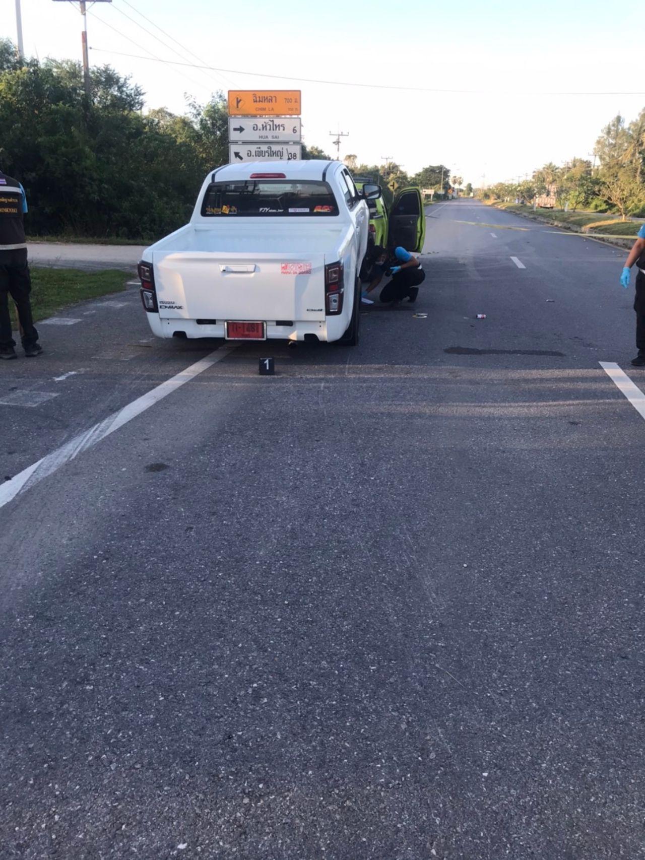 หลังเกิดเหตุพนักงานปั๊มได้โทรศัพท์แจ้งตำรวจ สภ.หัวไทร ก่อนที่ตำรวจ สภ.หัวไทร จะนำกำลังมาตั้งจุดสกัดที่ด่านความมั่นคงฉิมหลา ริมถนนสายดังกล่าว พื้นที่ ต.หน้าสตน อ.หัวไทร เพื่อให้คนร้ายยอมมอบตัว แต่คนร้ายไม่ยอมมอบตัว กลับใช้ปืนยิงใส่เจ้าหน้าที่ตำรวจไป 1 นัด ไม่ถูกใคร แล้วคนร้ายไปหยุดรถบริเวณดังกล่าว จากนั้นได้ลงจากรถ และพยายามใช้อาวุธปืน 9 มม.จ่อขมับตัวเองตัวเอง เพื่อขู่ไม่ให้ตำรวจเข้ามาใกล้ ก่อนที่คนร้ายจะกลับเข้าไปในรถอีกครั้ง และถือปืนจ่อหัวตัวเองตลอดเวลา และพยายามจะจุดไฟเผารถ